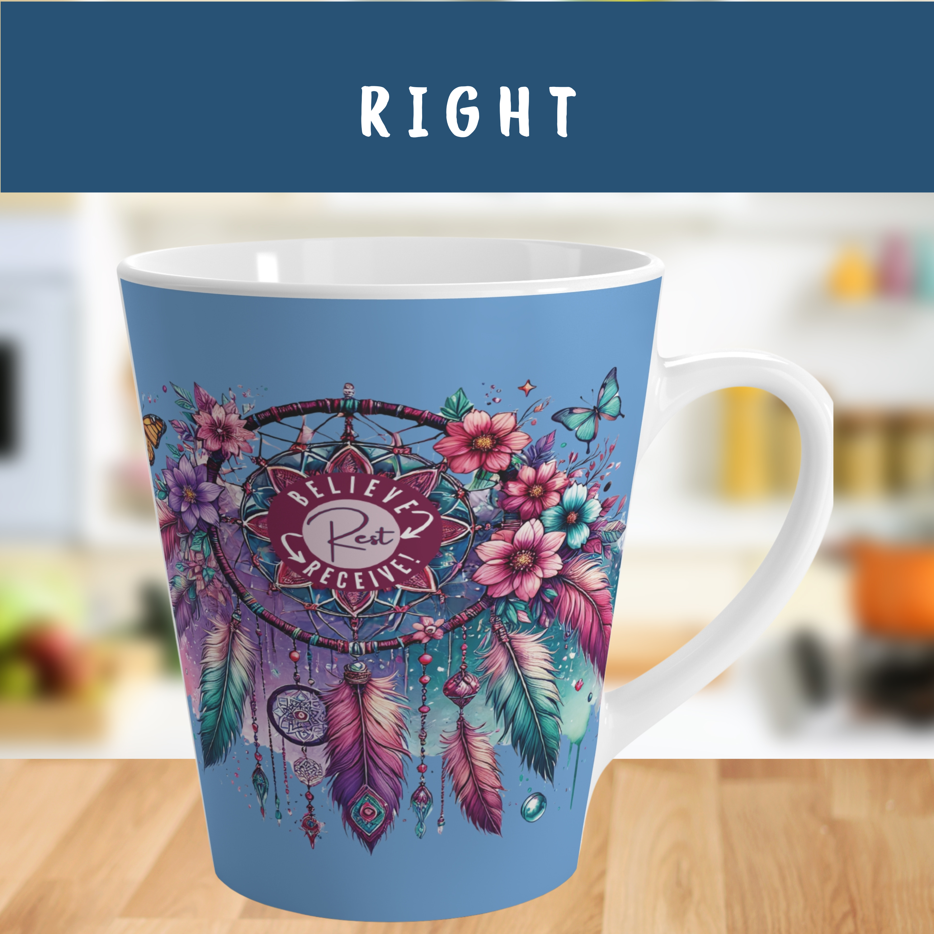 Be reminded of the transformative journey of faith with our “Believe-Rest-Receive!™” latte mug. Designed to inspire and encourage, this roadmap of faith coffee cup is a beautiful reminder of the steps needed to fully embrace God’s promises: