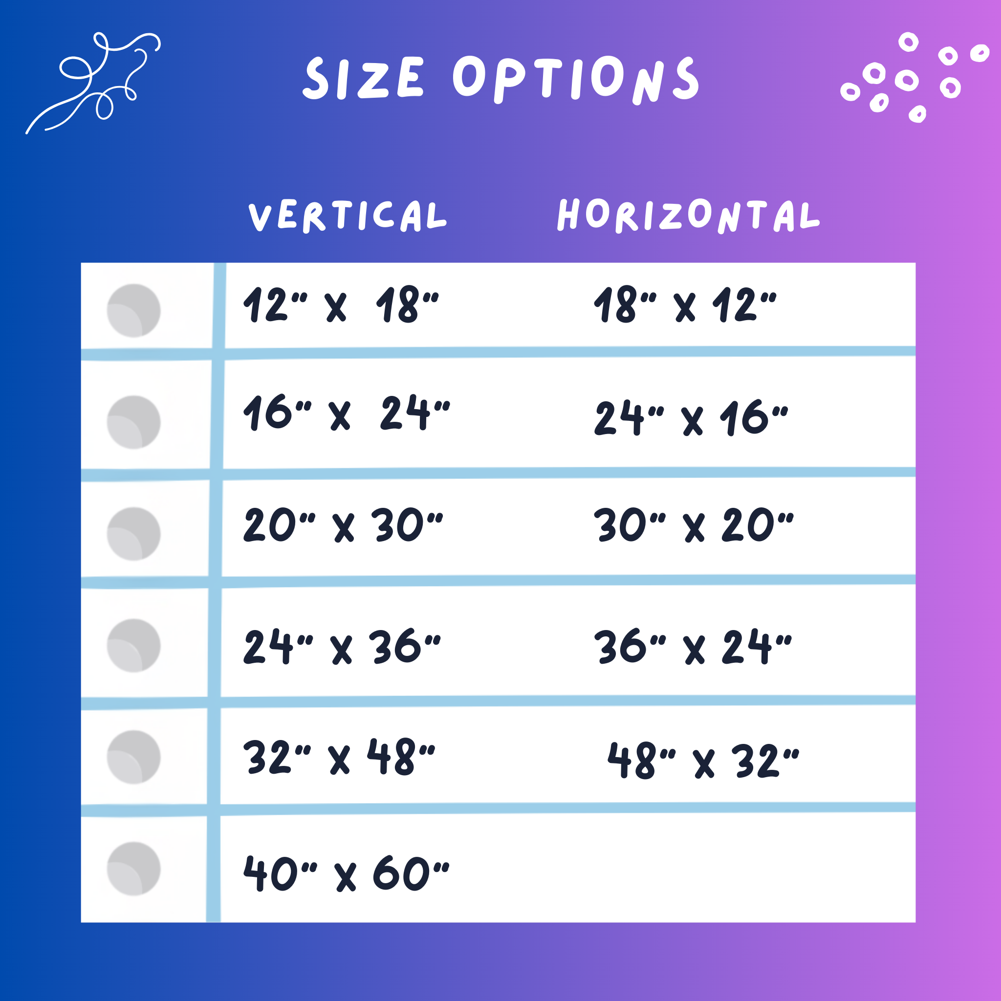 ✔ Available in five (5) horizontal and five (5) vertical size options