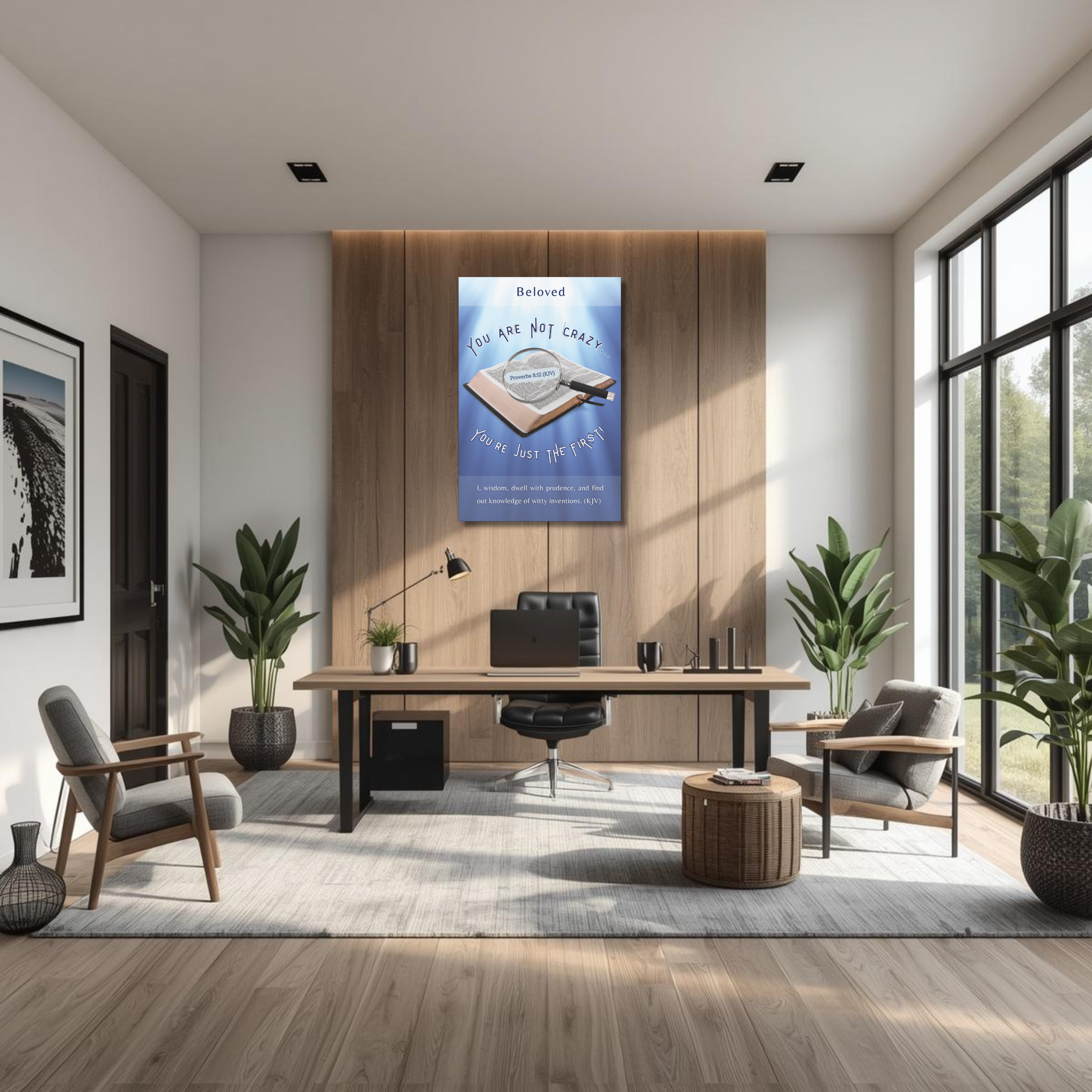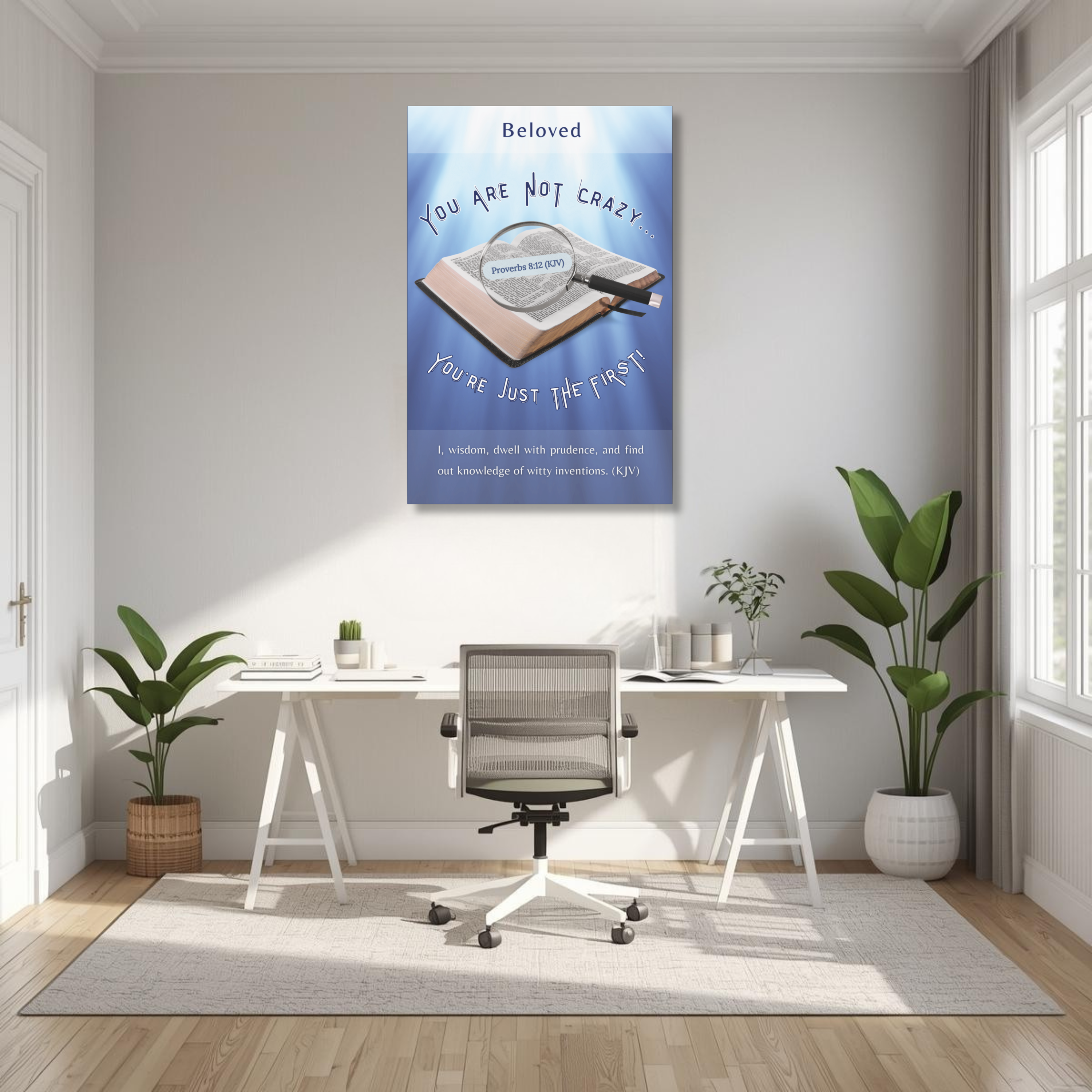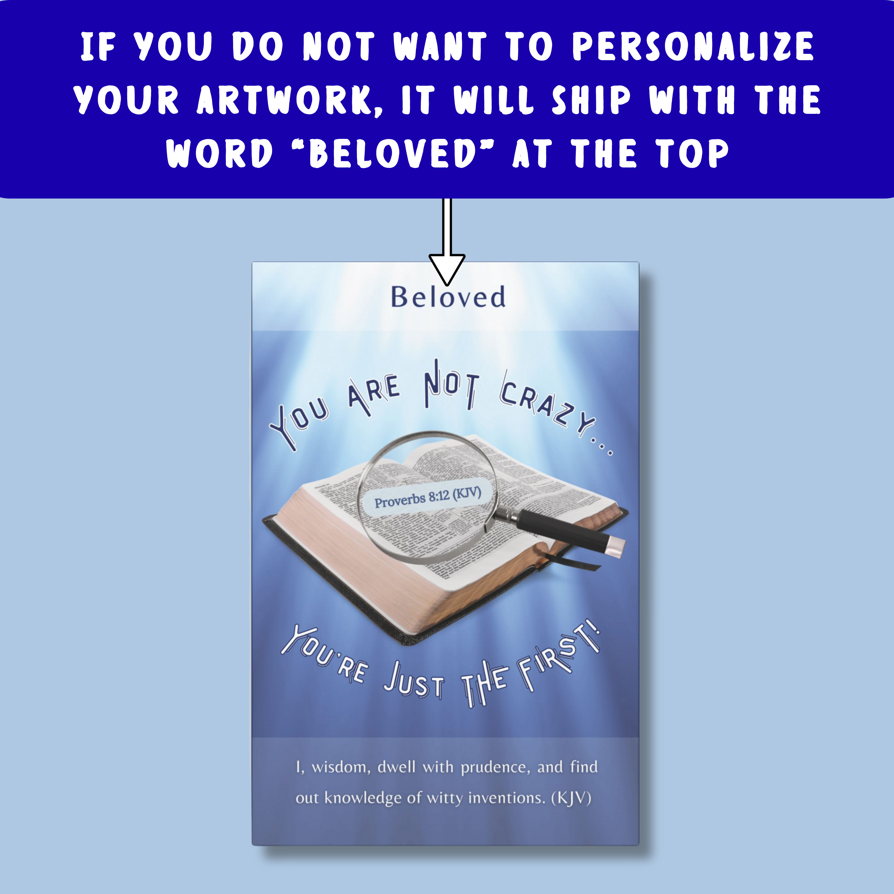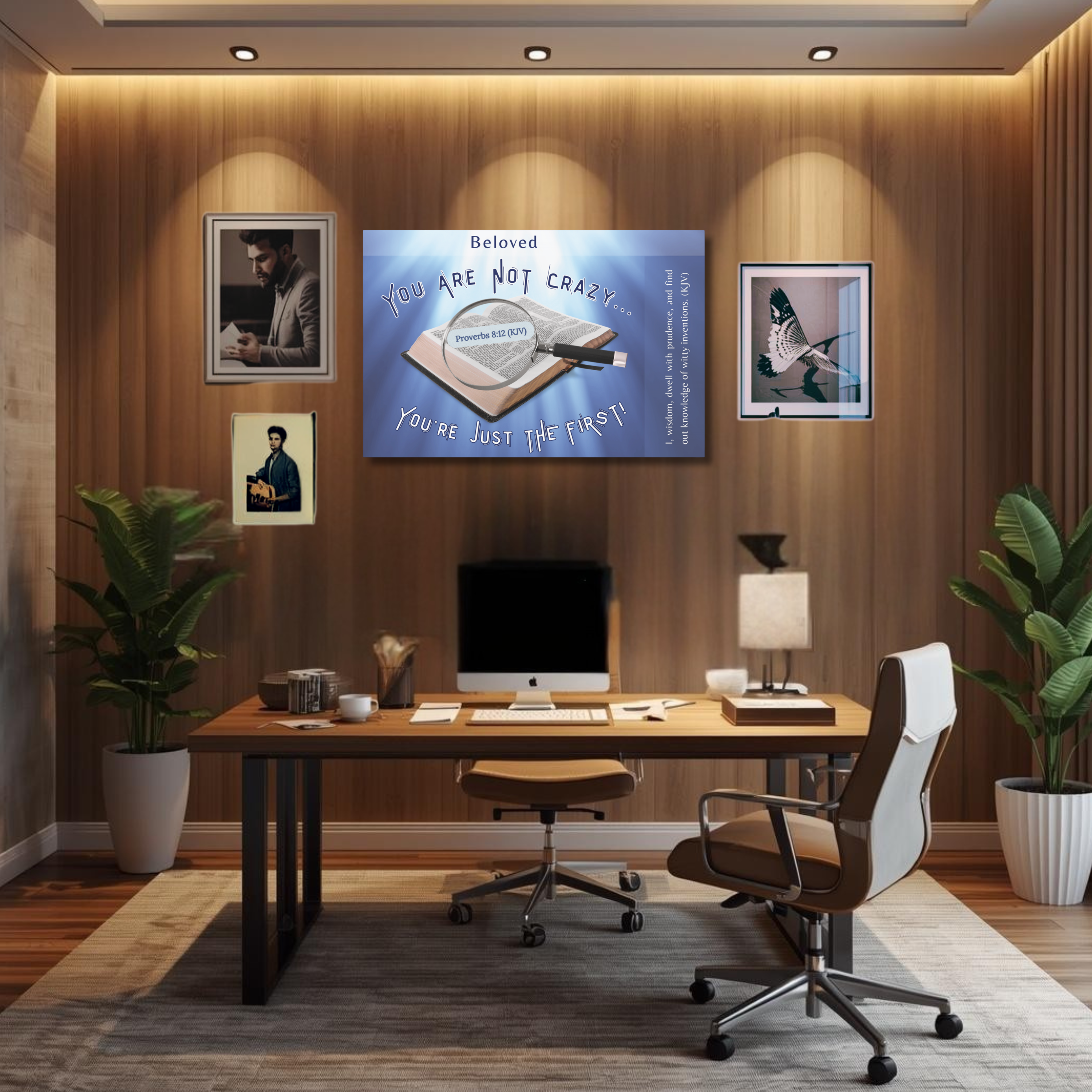 VERTICAL OR HORIZONTAL MATTE CANVAS: Personalizable “You Are NOT Crazy – God Says You’re Just THE FIRST!” Canvas Wall Art | Proverbs 8:12 Scripture Art | Blue Matte Faith-Inspired Decor
