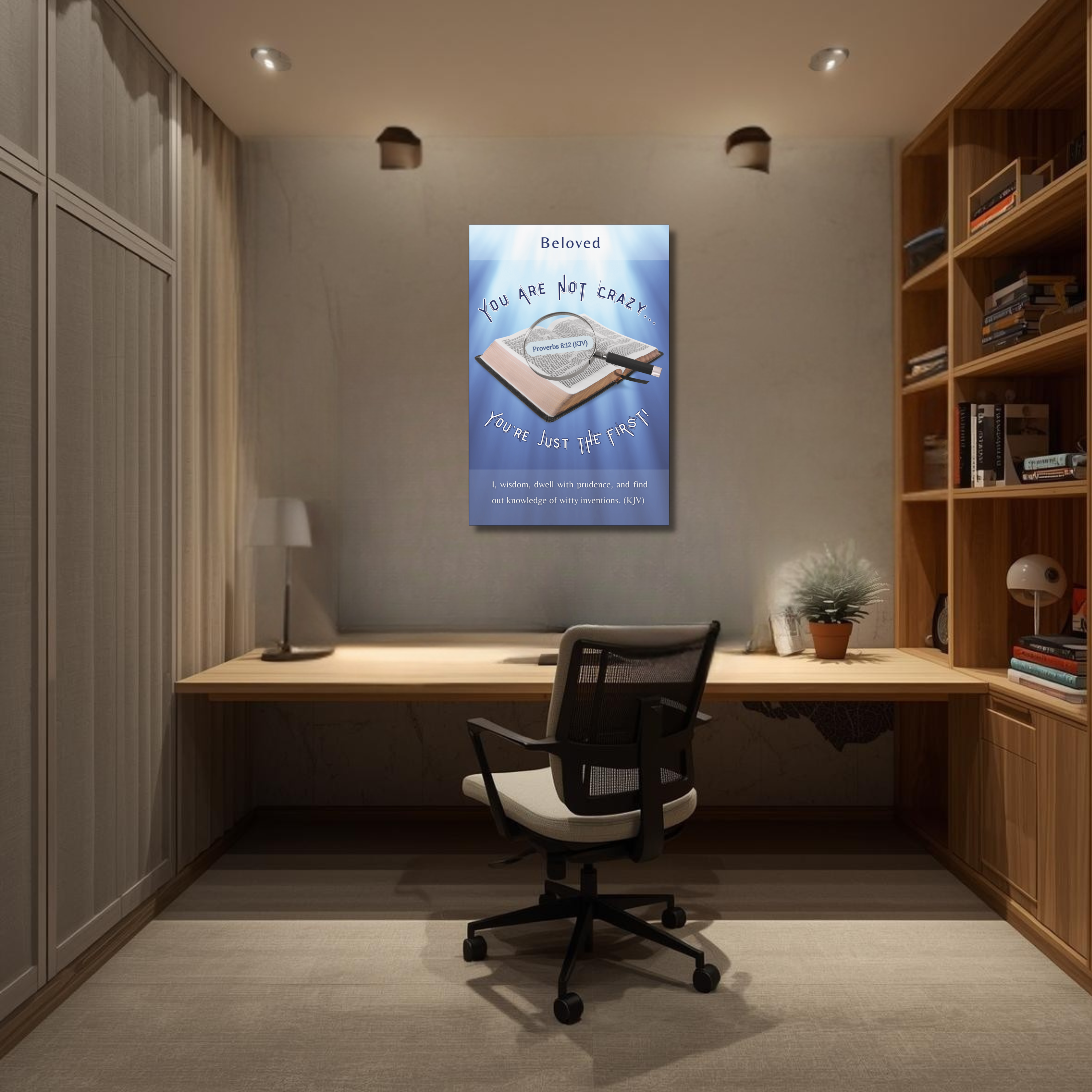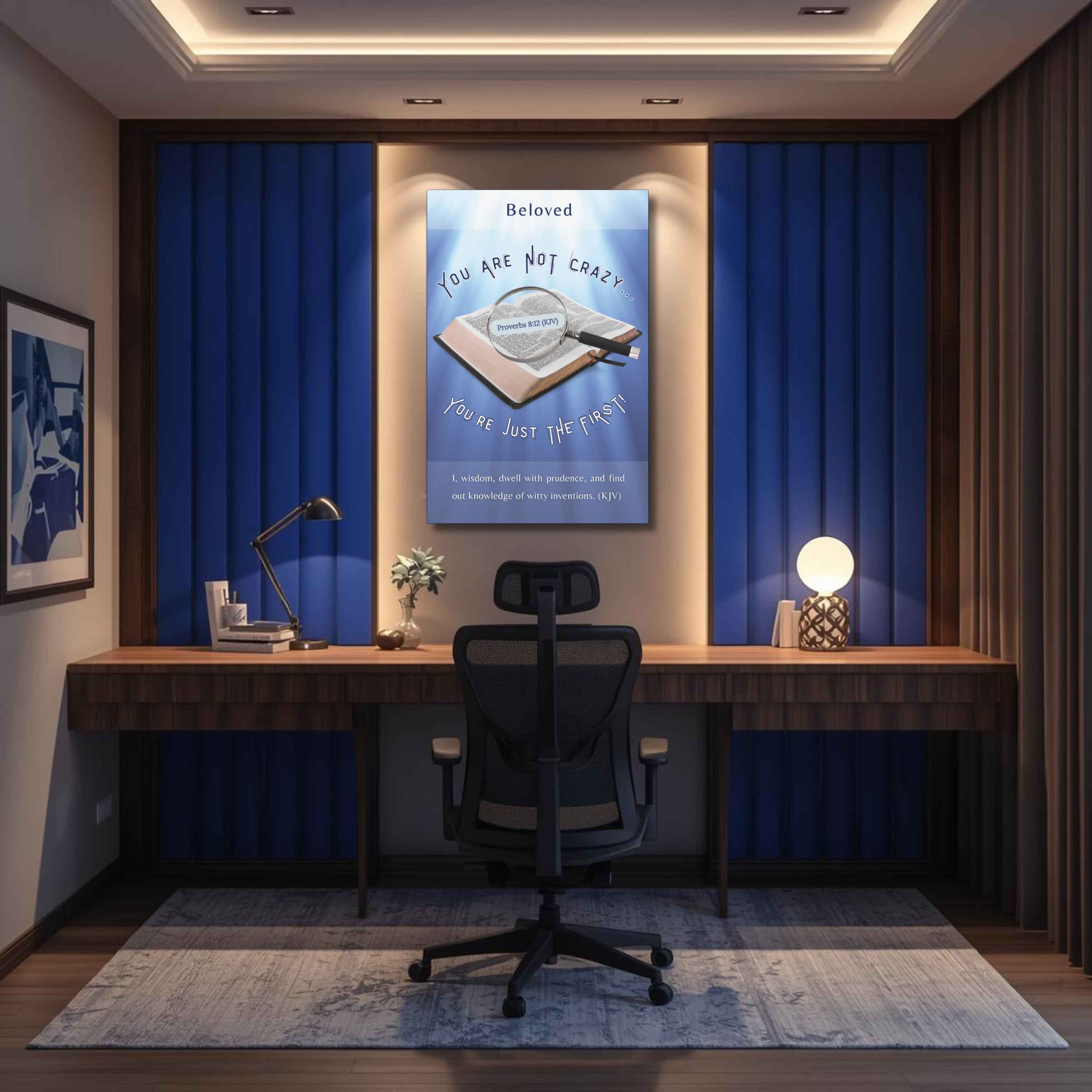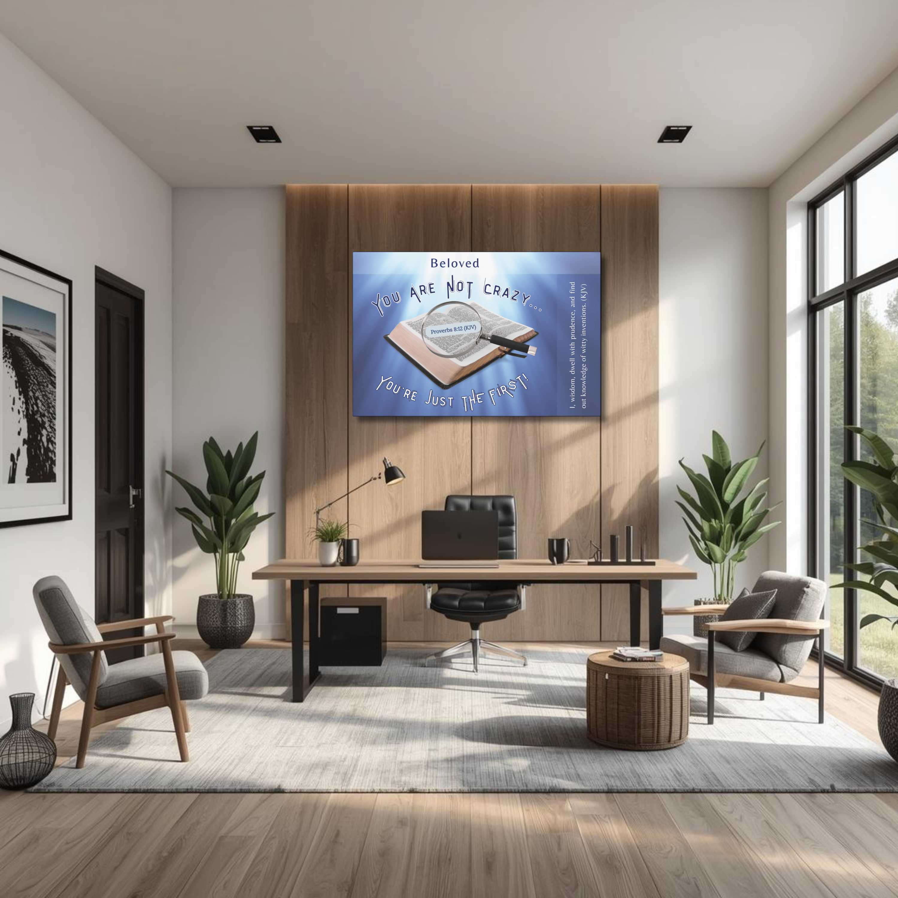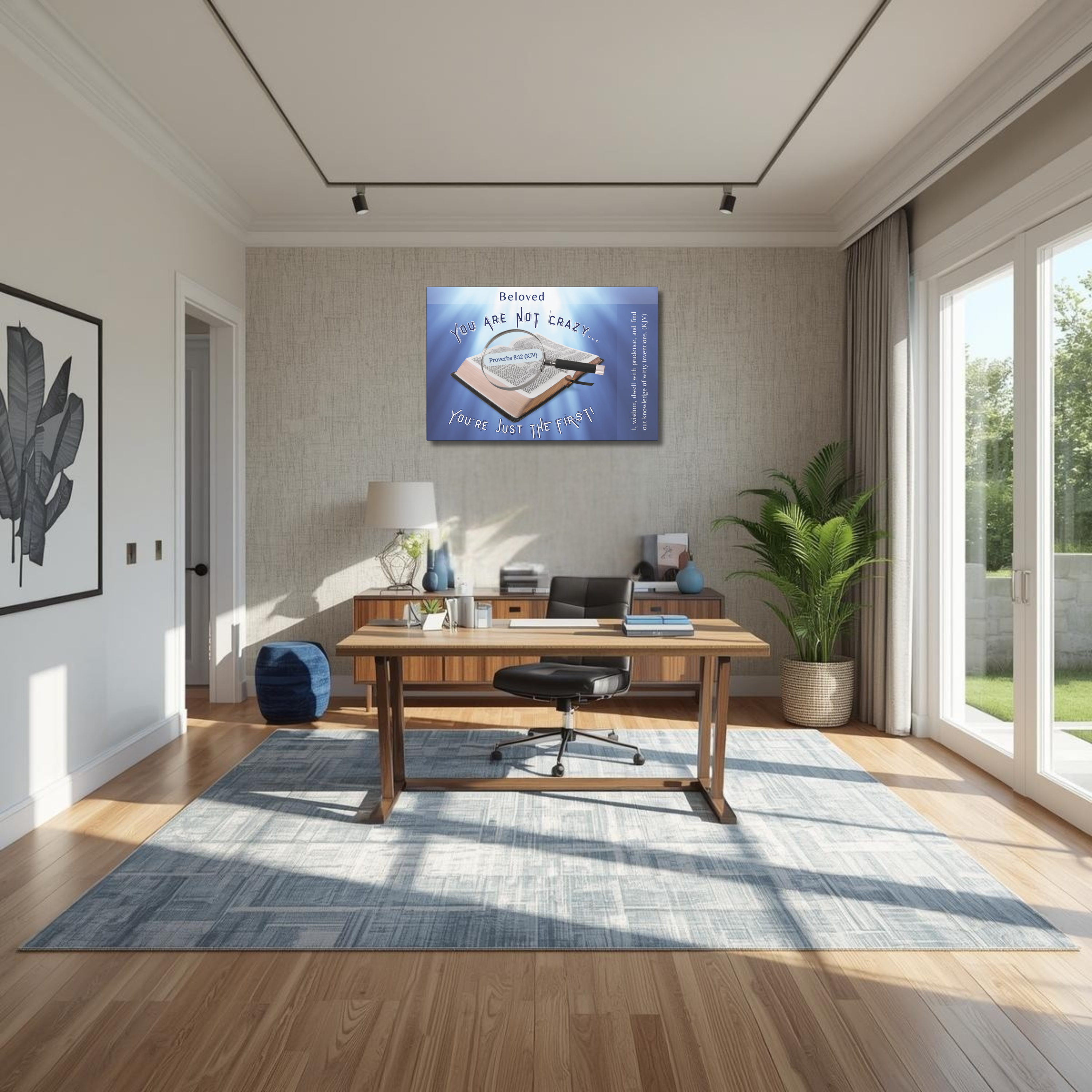 VERTICAL OR HORIZONTAL MATTE CANVAS: Personalizable “You Are NOT Crazy – God Says You’re Just THE FIRST!” Canvas Wall Art | Proverbs 8:12 Scripture Art | Blue Matte Faith-Inspired Decor