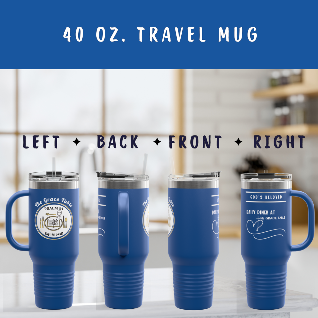 Stay hydrated and inspired with this 40 oz personalized travel mug from the “Grace Table™” Collection. Perfect for church gatherings, Bible studies, and small group meetings, it also makes a loving, faith-filled gift for anyone passionate about sharing the message of Grace.