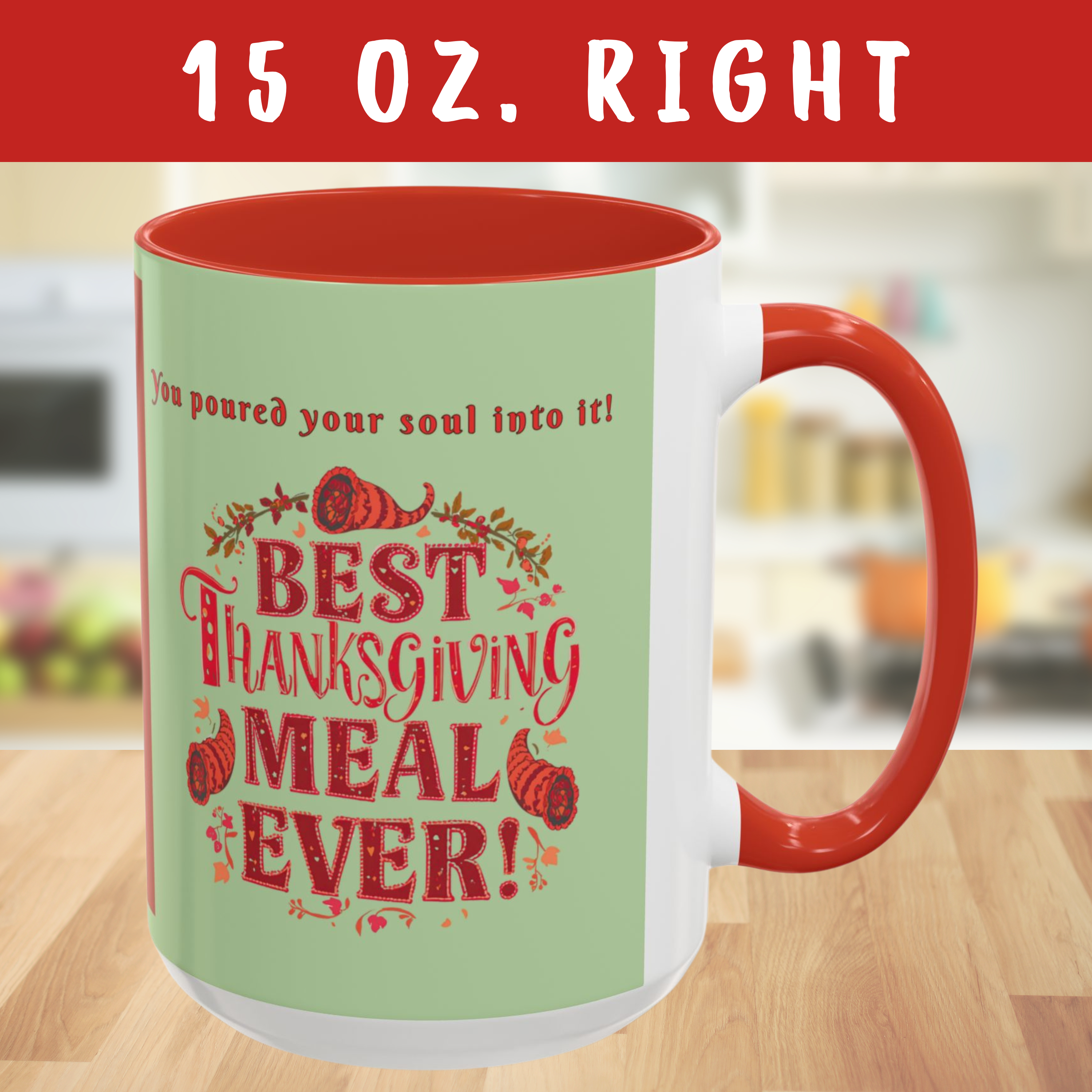 Available in 11 oz and 15 oz sizes, this green-background mug makes a meaningful hostess gift or kitchen keepsake that blends gratitude, design, and love.