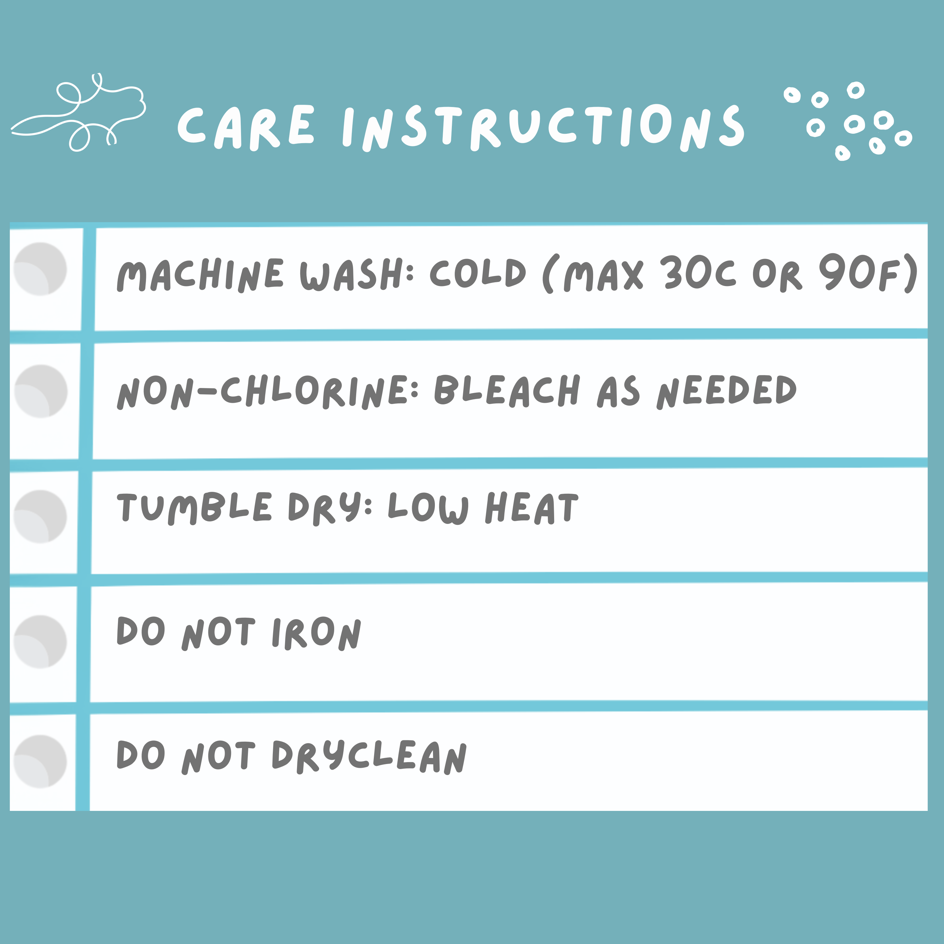 Care instructions: Machine wash: cold (max 30C or 90F), Non-chlorine: bleach as needed, Tumble dry: low heat, , Do not dryclean