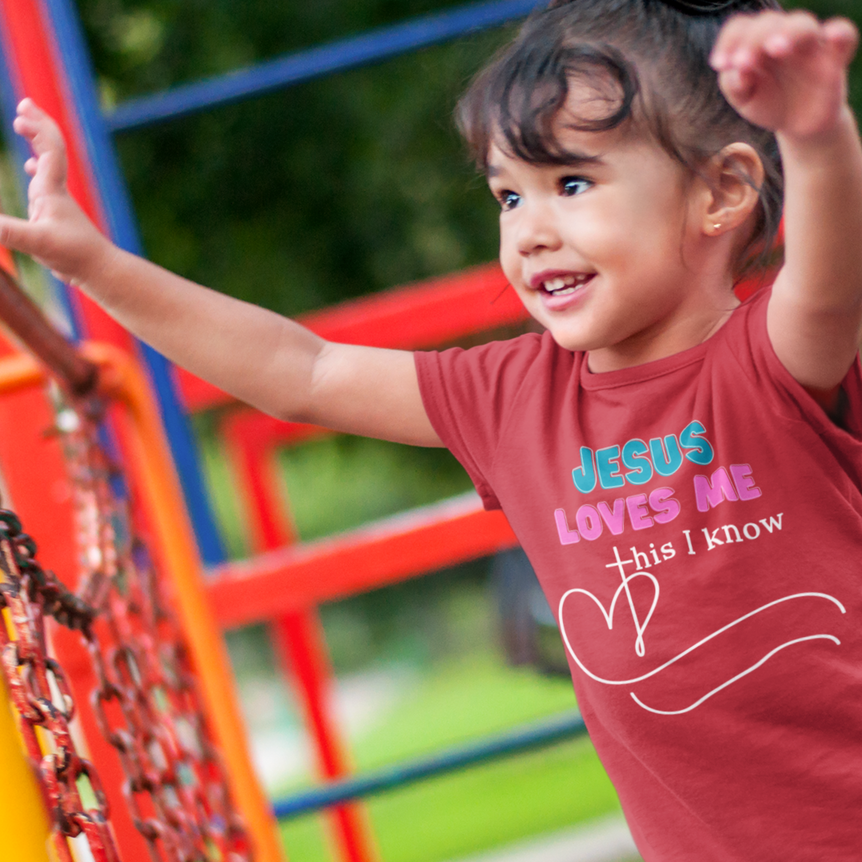 Share the simplest and most powerful truth with the toddlers in your life. Our soft, high-quality “Jesus Loves Me This I Know” t-shirt is lovingly printed in both English and Spanish (“Cristo Me Ama, Bien Lo Sé”). Designed for youth, this shirt makes a perfect gift for baptism, birthday, or everyday wear. Available in five colors to suit every personality, but feel free to request a color not shown.