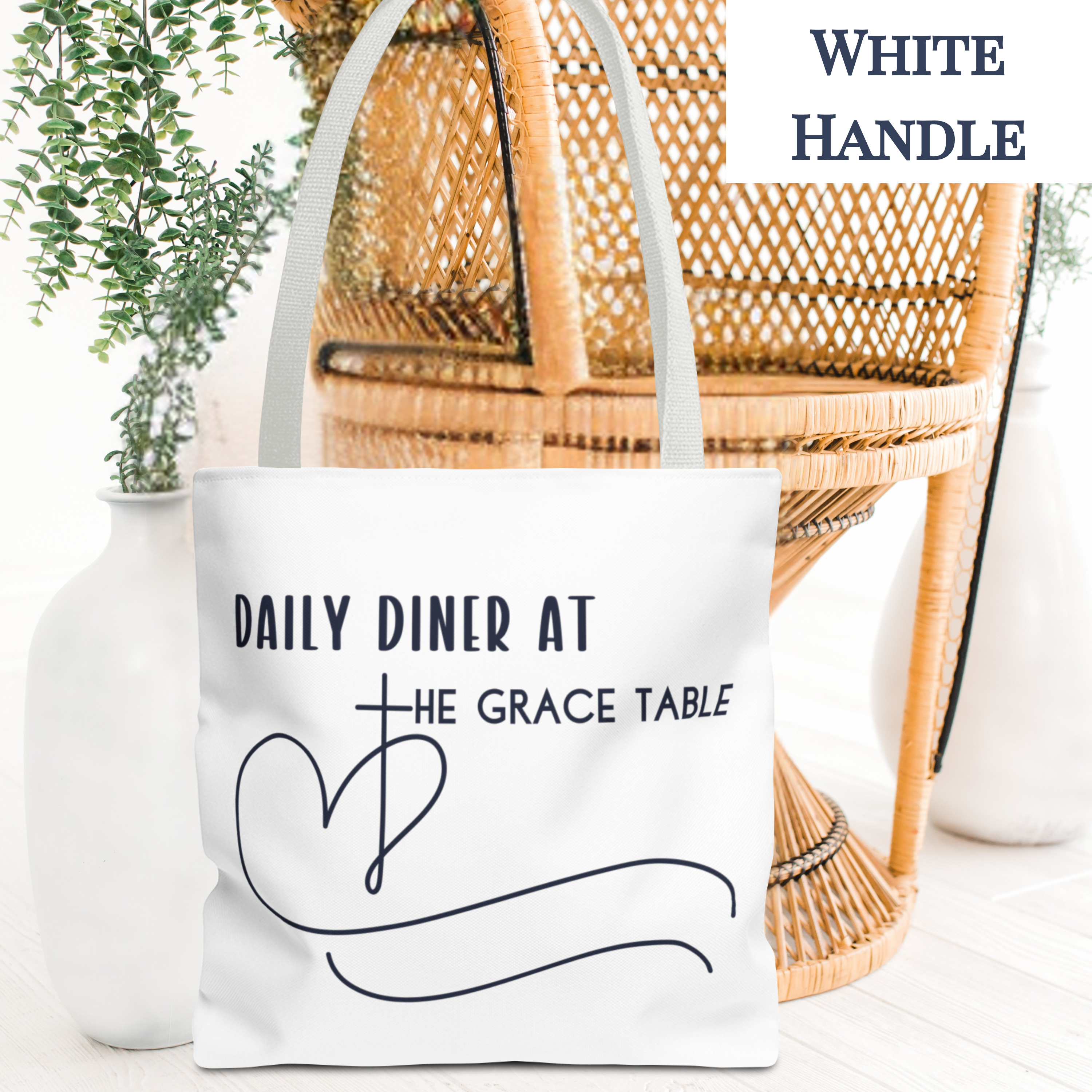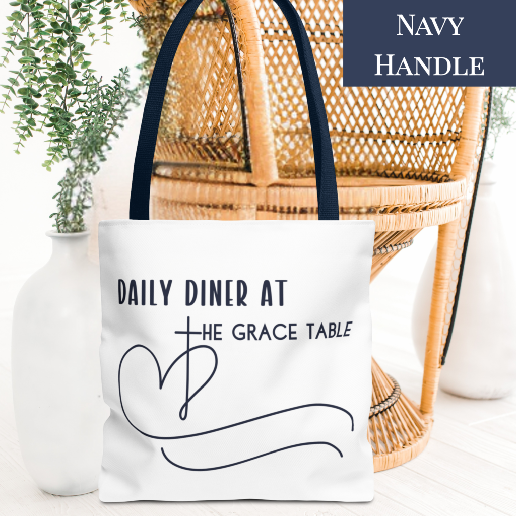 Declare your place at The Grace Table with this tote bag, a beautiful reminder that you are a beloved daily diner at God’s table of grace. Perfect for church, small groups, or everyday carrying as a testament to your faith.