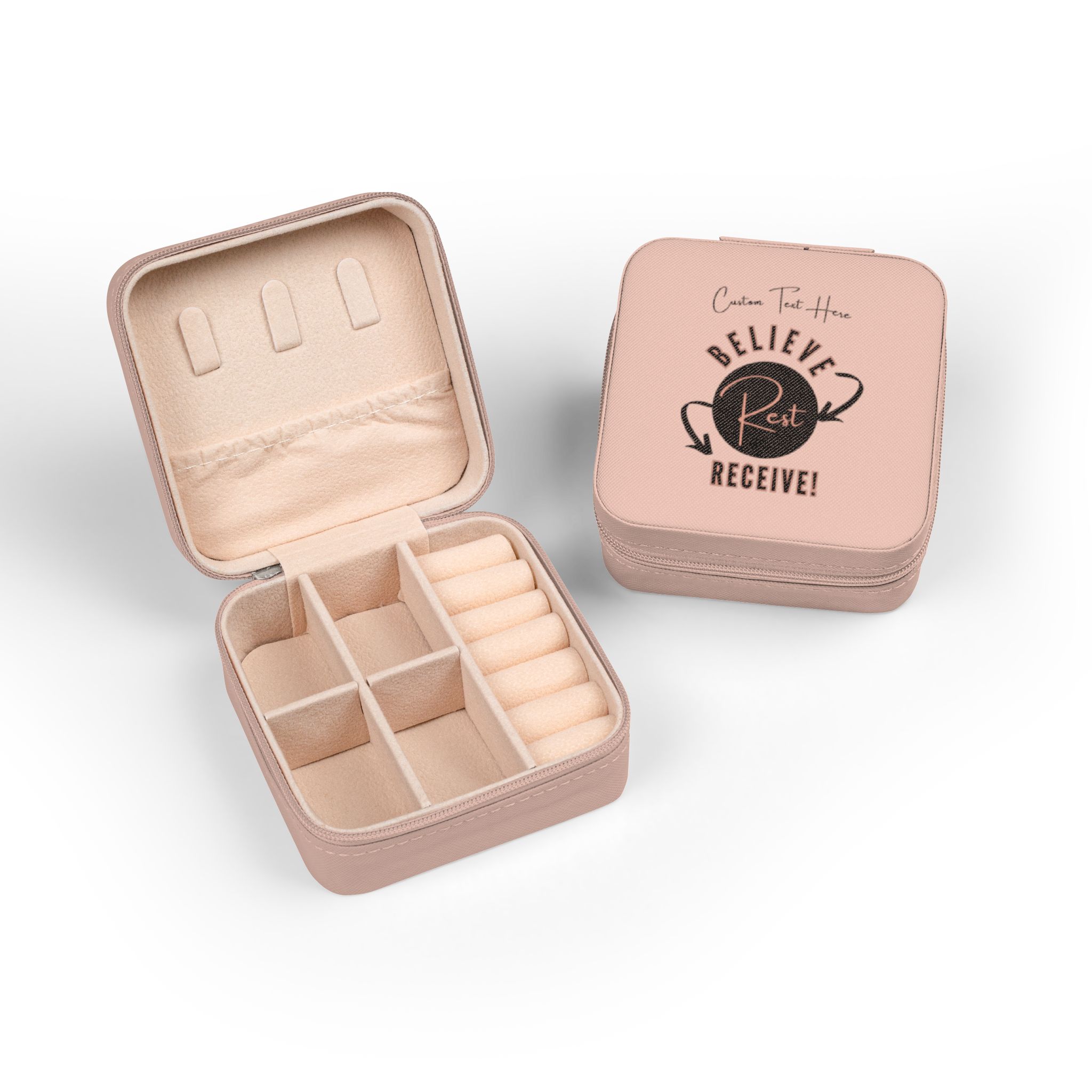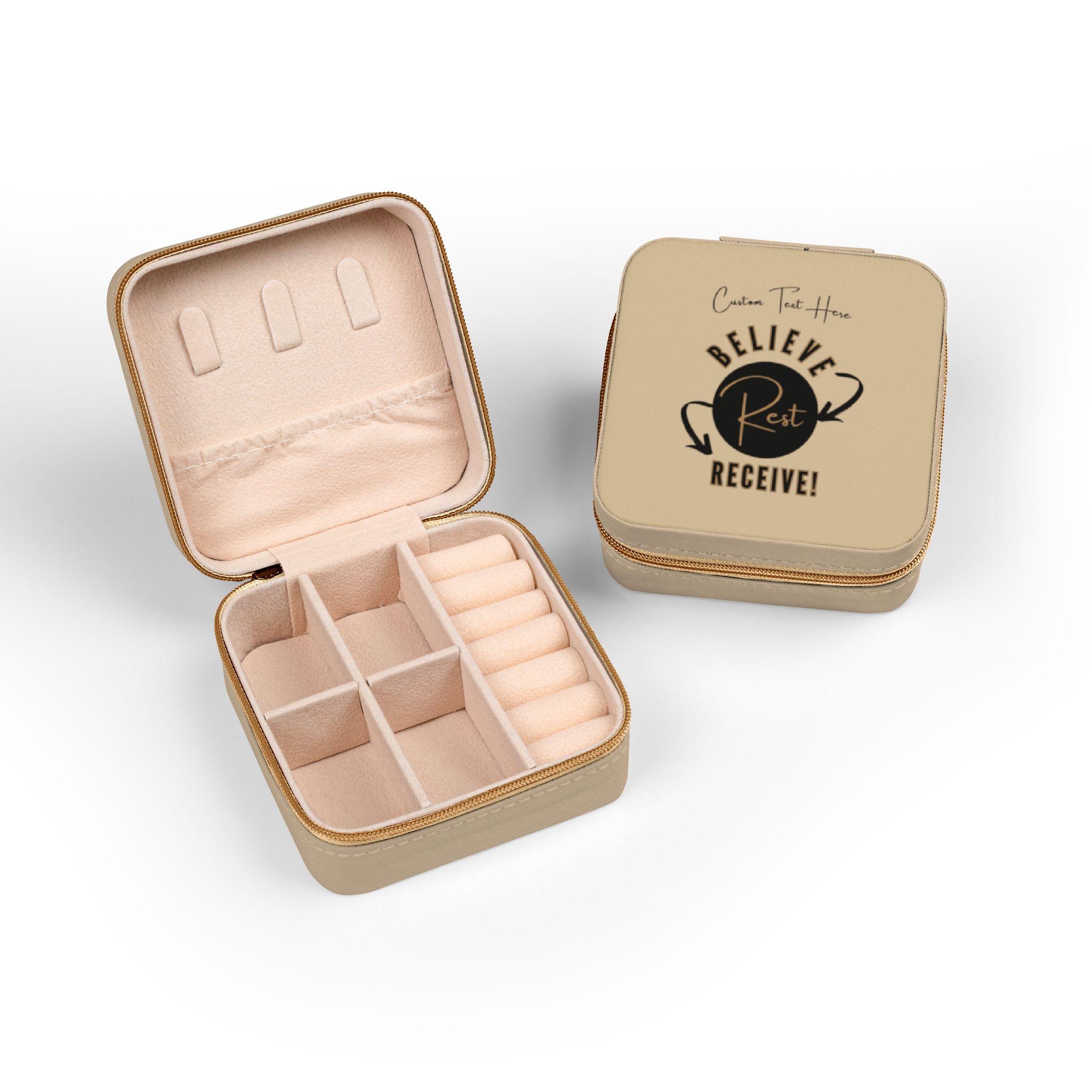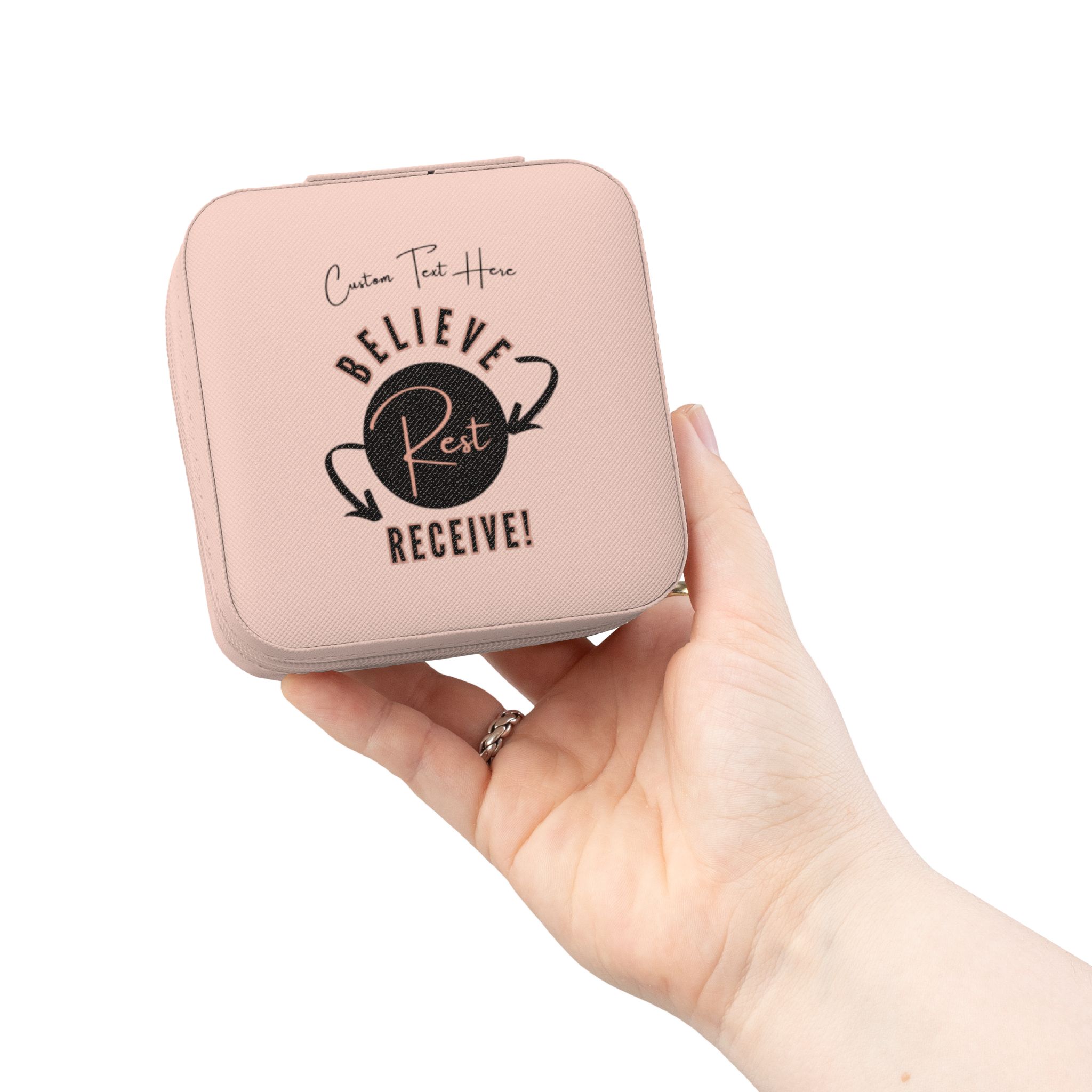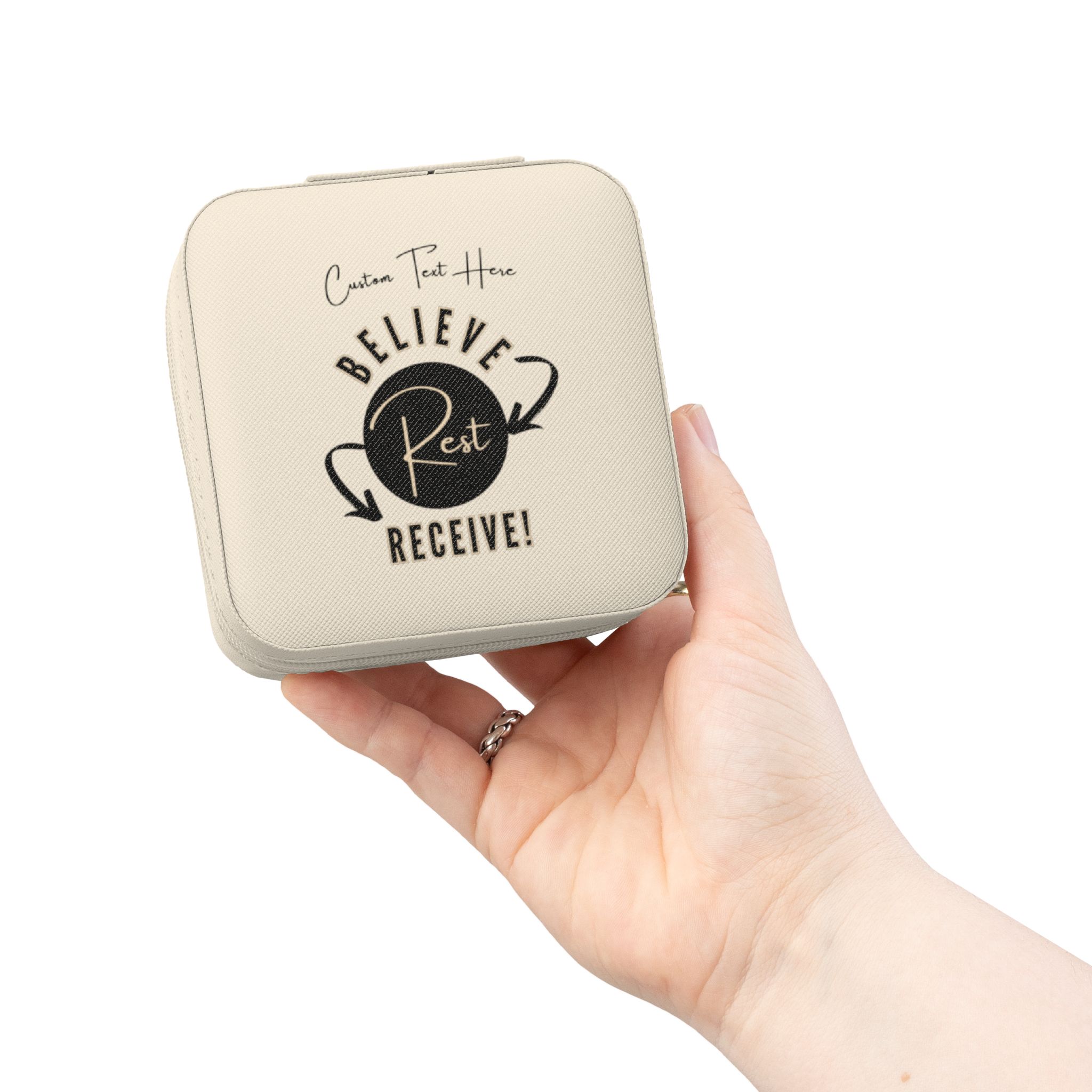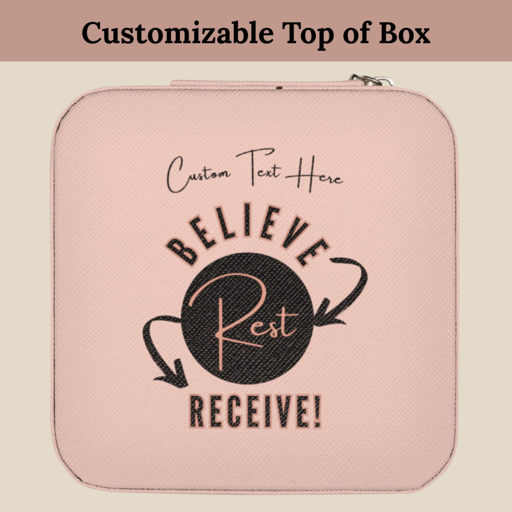 Organize Your Journey, One Step at a Time. This beautifully designed compact organizer features the “Believe • Rest • Receive” roadmap—a gentle guide for seasons of waiting, trusting, and embracing. It’s the perfect home for jewelry that tells the story of your faith walk.