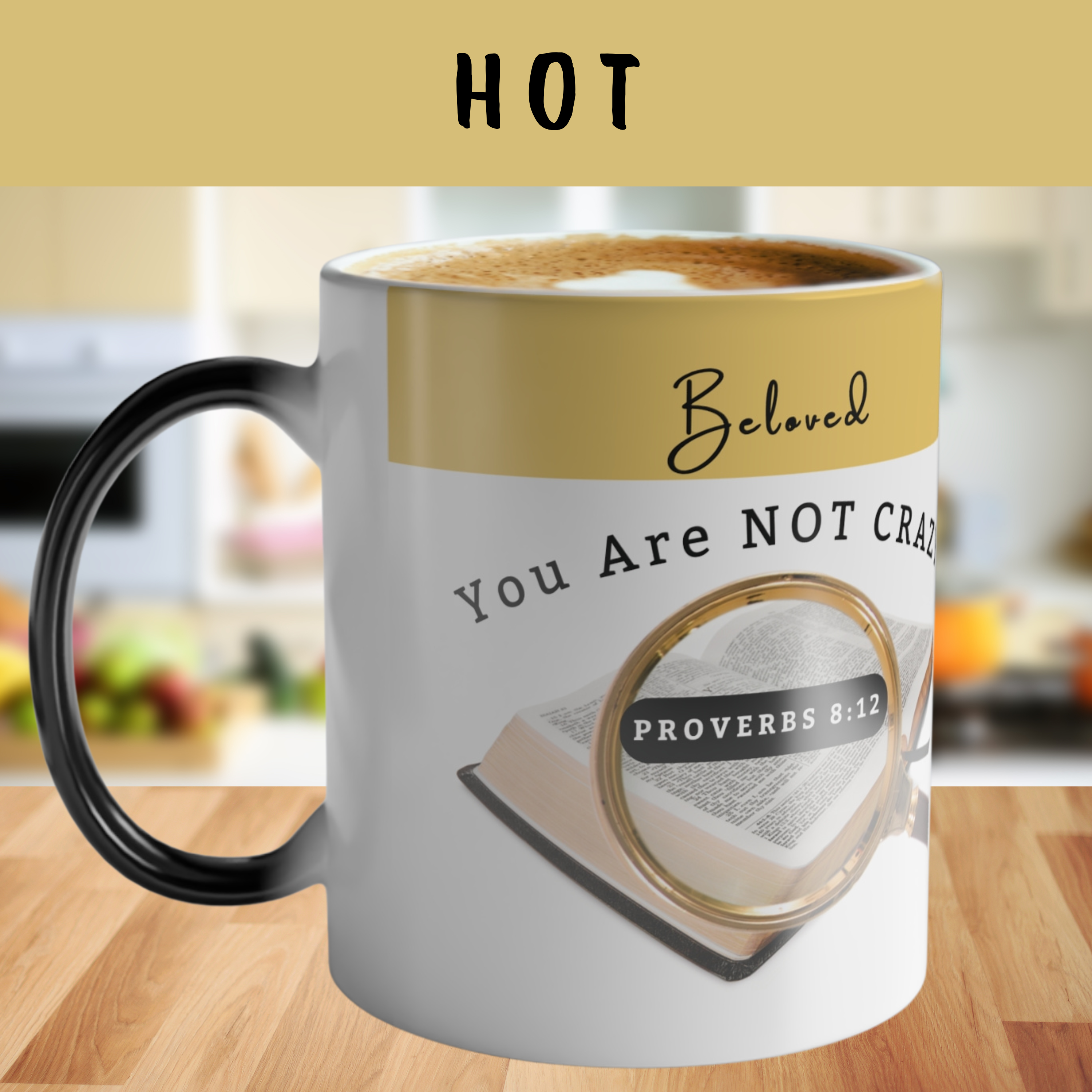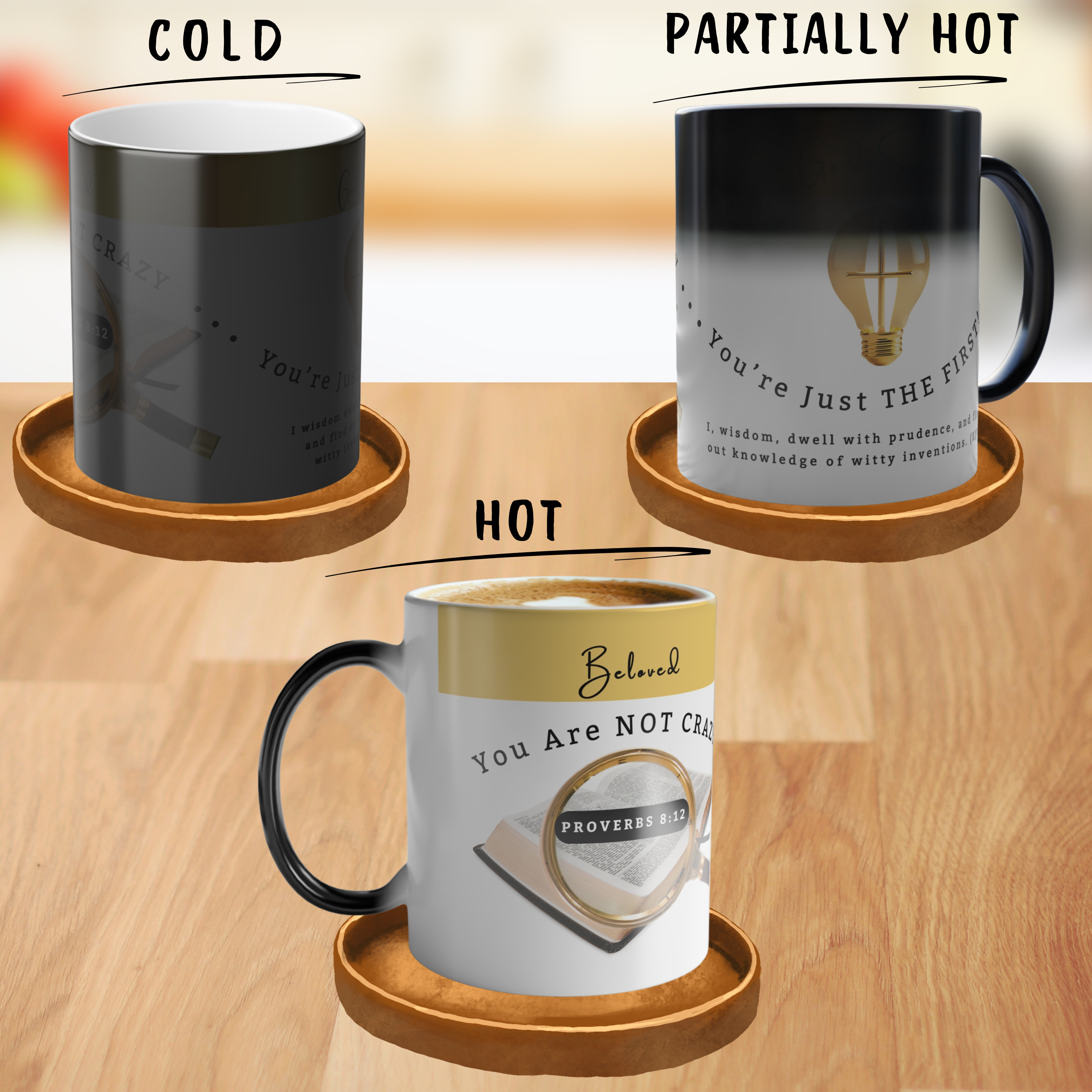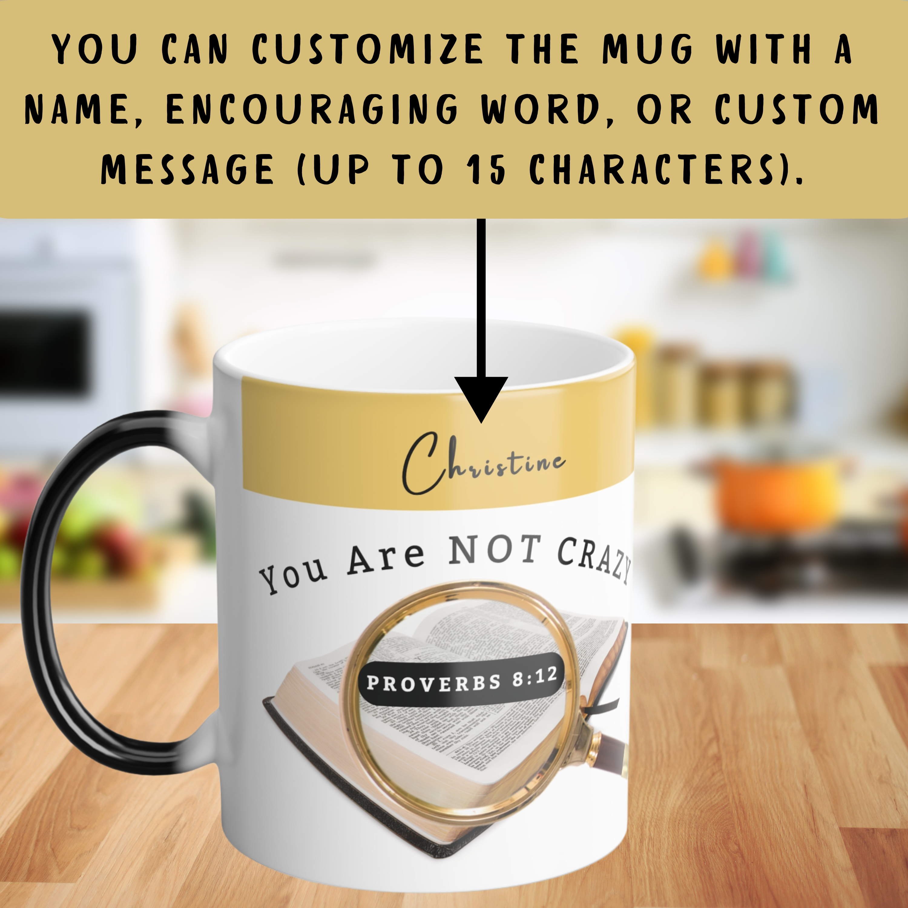 Featuring the uplifting Proverbs 8:12 Bible verse, this coffee cup is a celebration of divine inspiration and the courage to bring bold, God-given visions to life. Whether you’re sipping your morning coffee or winding down with tea, let this mug inspire you to persevere and stay rooted in faith, knowing that unique ideas are a reflection of God’s guidance and creativity. When filled with a hot beverage, the design reveals vibrant colors and an uplifting message to guide your faith journey.