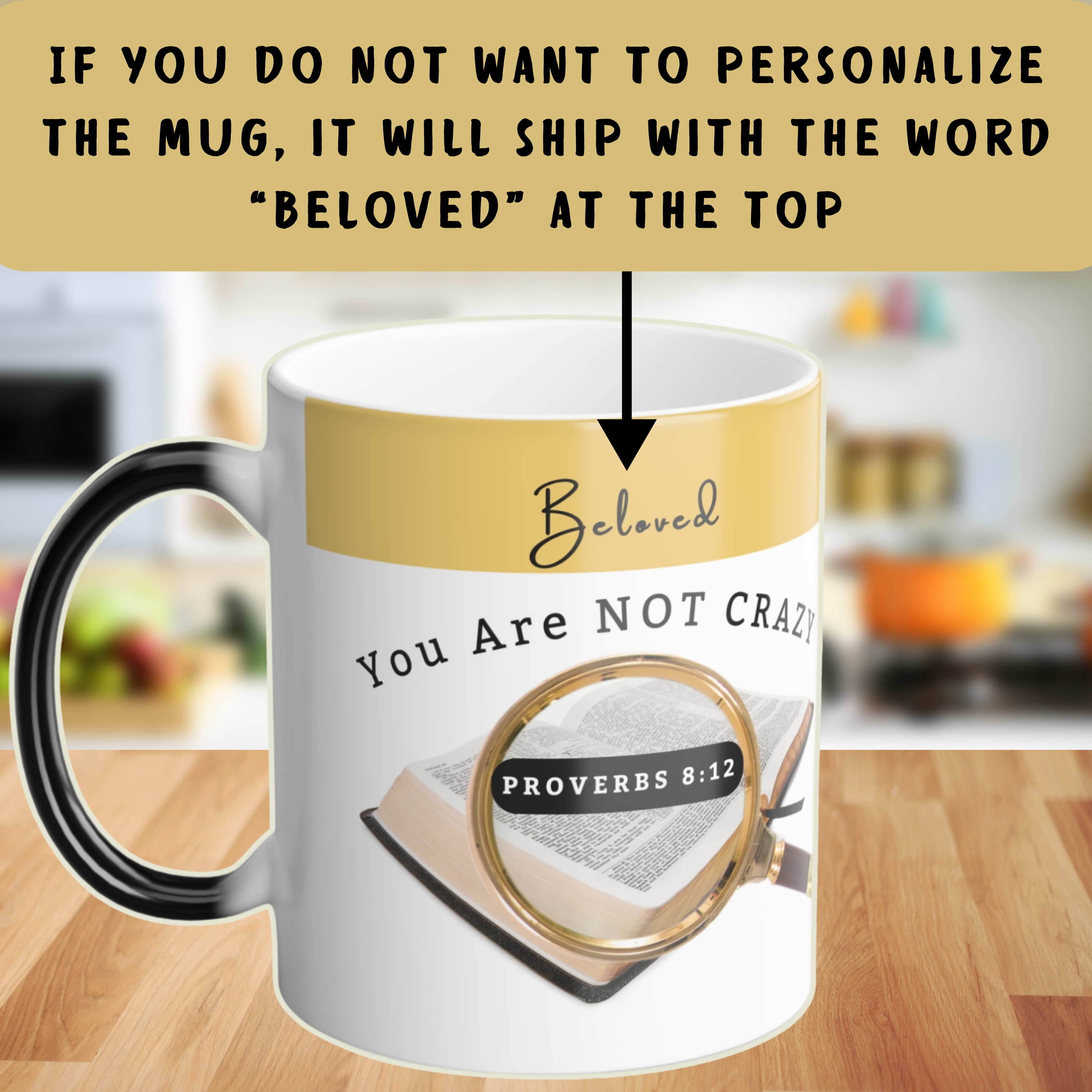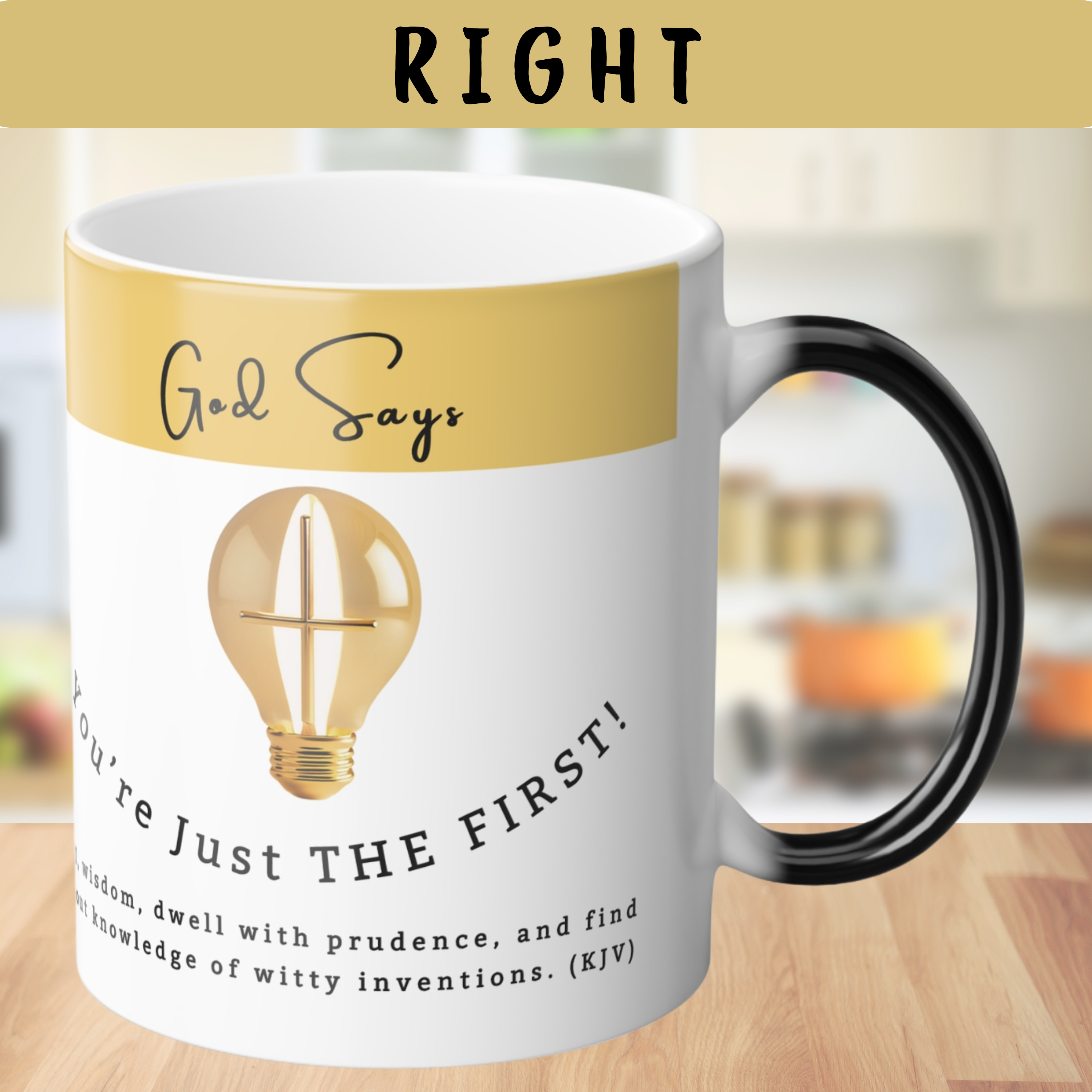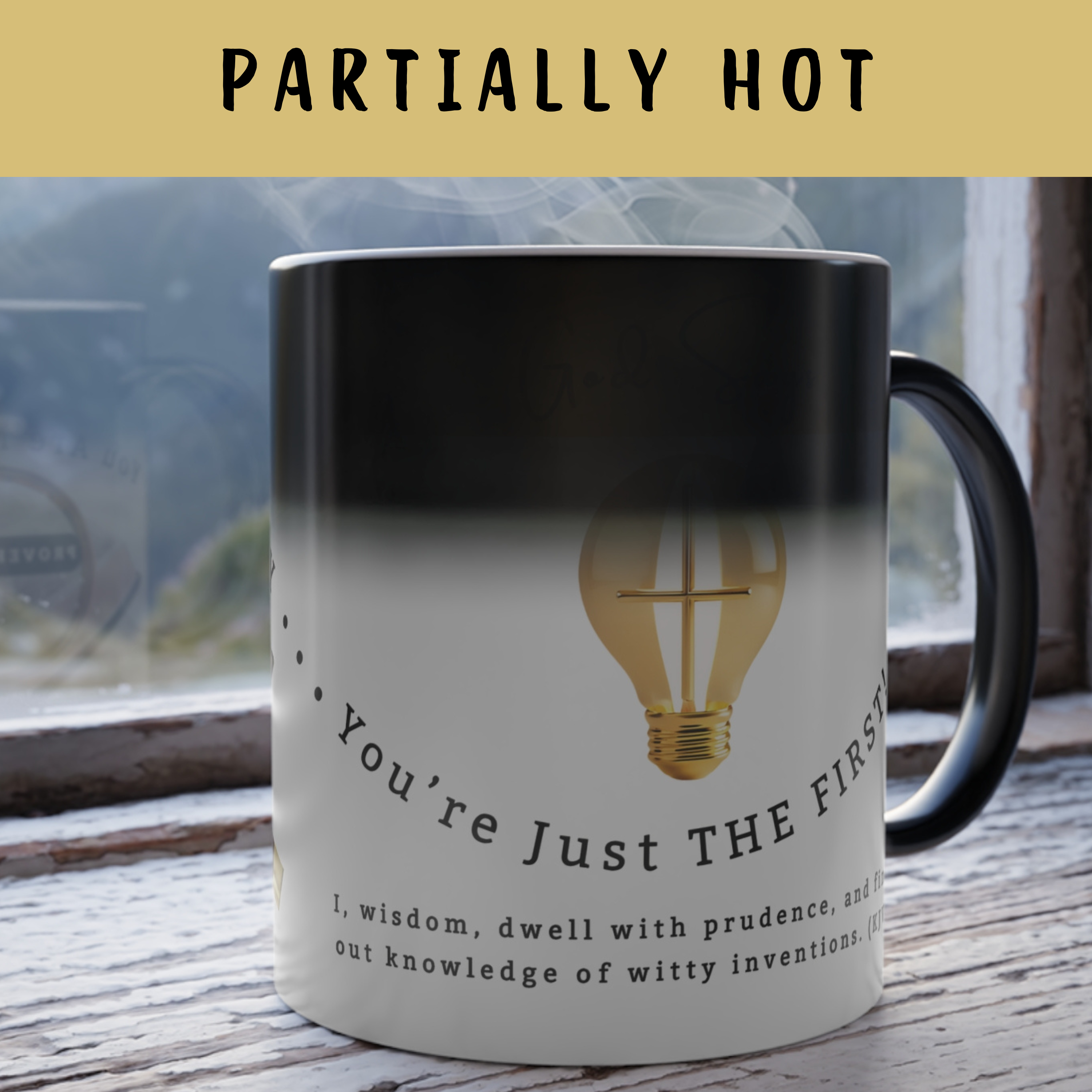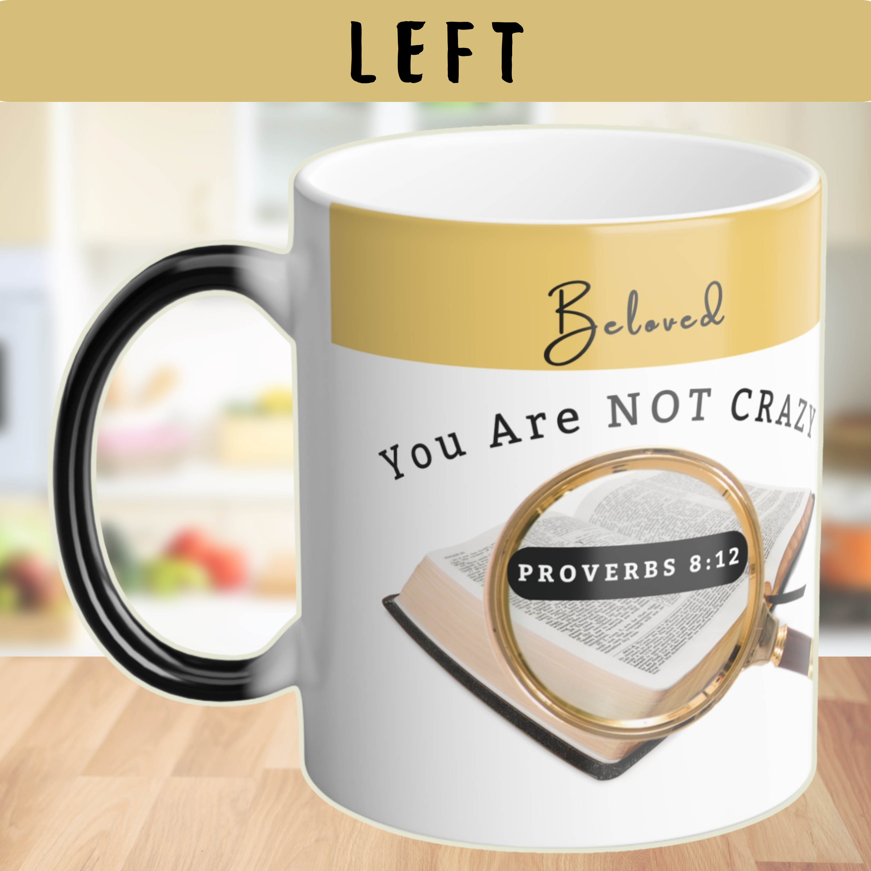 Featuring the uplifting Proverbs 8:12 Bible verse, this coffee cup is a celebration of divine inspiration and the courage to bring bold, God-given visions to life. Whether you’re sipping your morning coffee or winding down with tea, let this mug inspire you to persevere and stay rooted in faith, knowing that unique ideas are a reflection of God’s guidance and creativity. When filled with a hot beverage, the design reveals vibrant colors and an uplifting message to guide your faith journey.