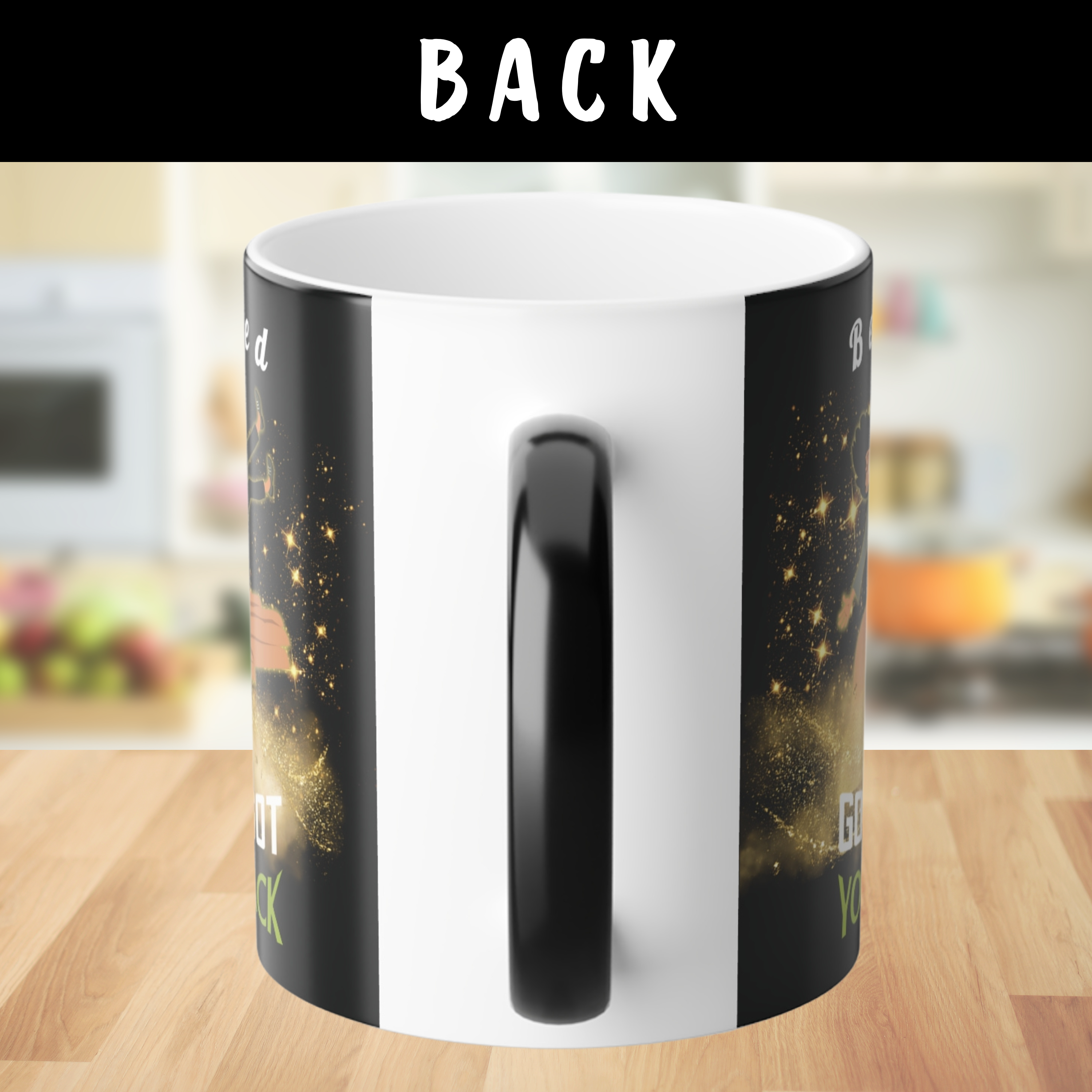 You can customize the top of the mug with a name, word, or message (up to 15 characters). If you do not personalize it, the mug will ship with “Beloved” at the top.