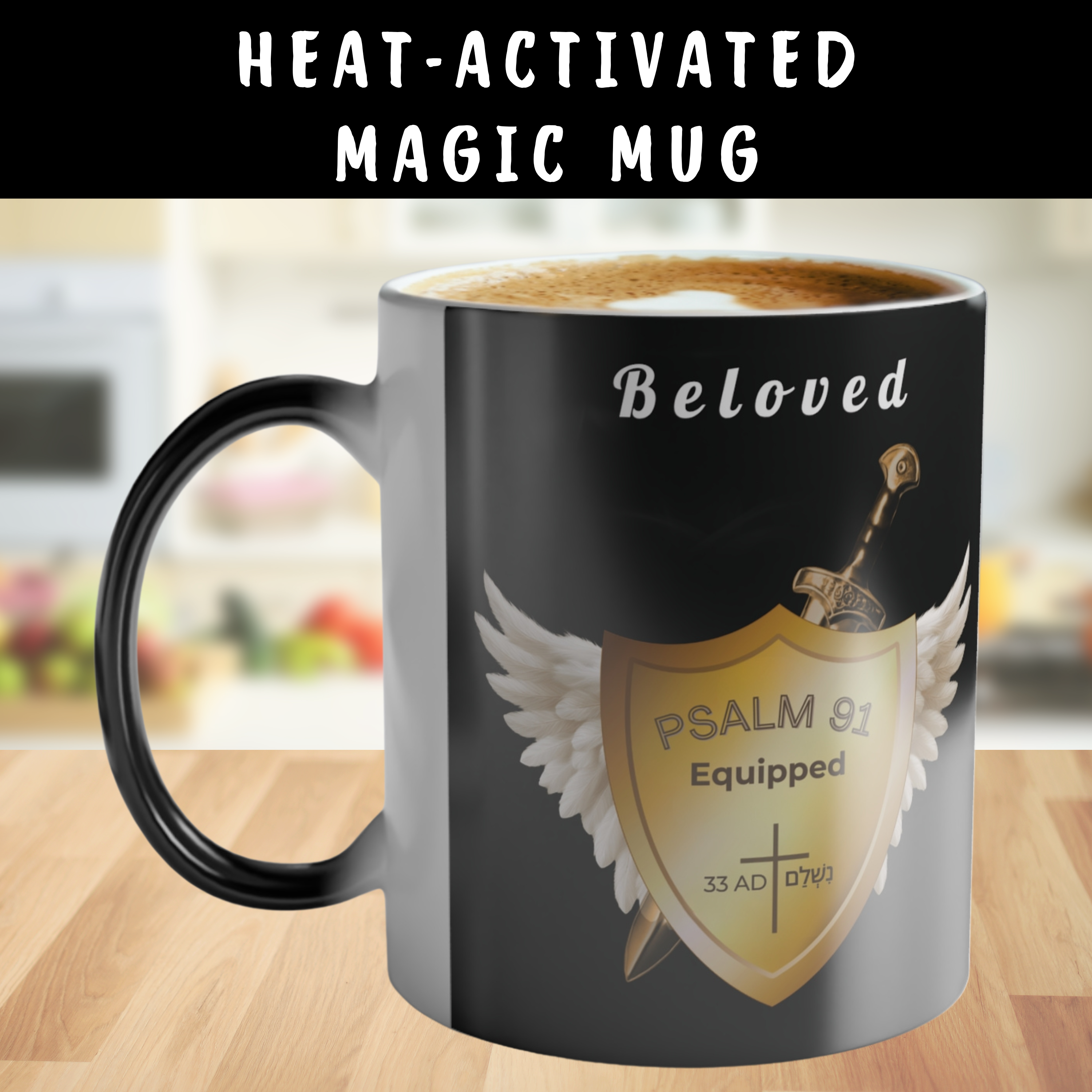 Find daily strength with our customizable Psalm 91 heat-activated mug. This cup keeps your drinks hot or cold while reminding you of God’s promises. It makes for a unique Christian gift, featuring your choice of verses from Psalm 91 for comfort and courage.