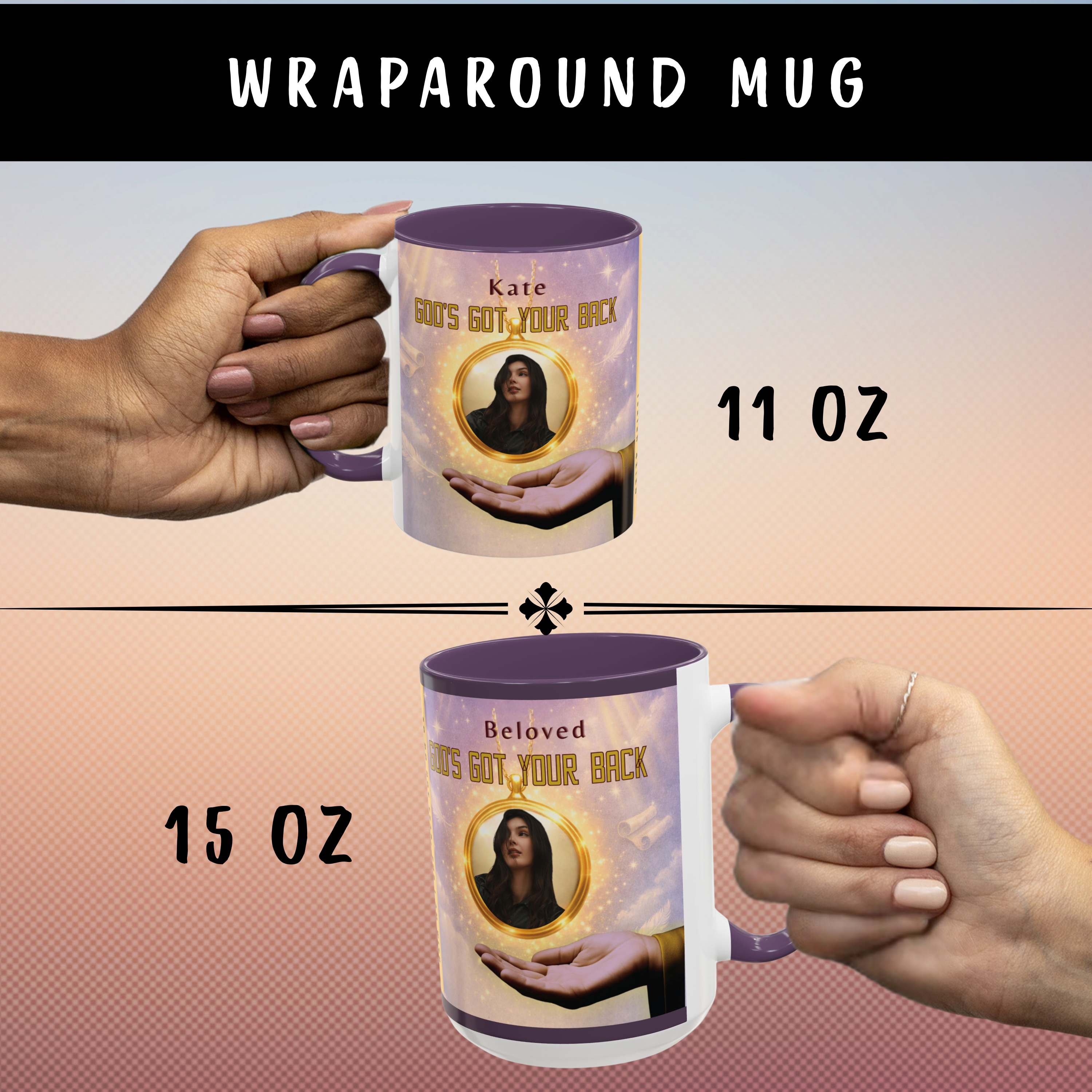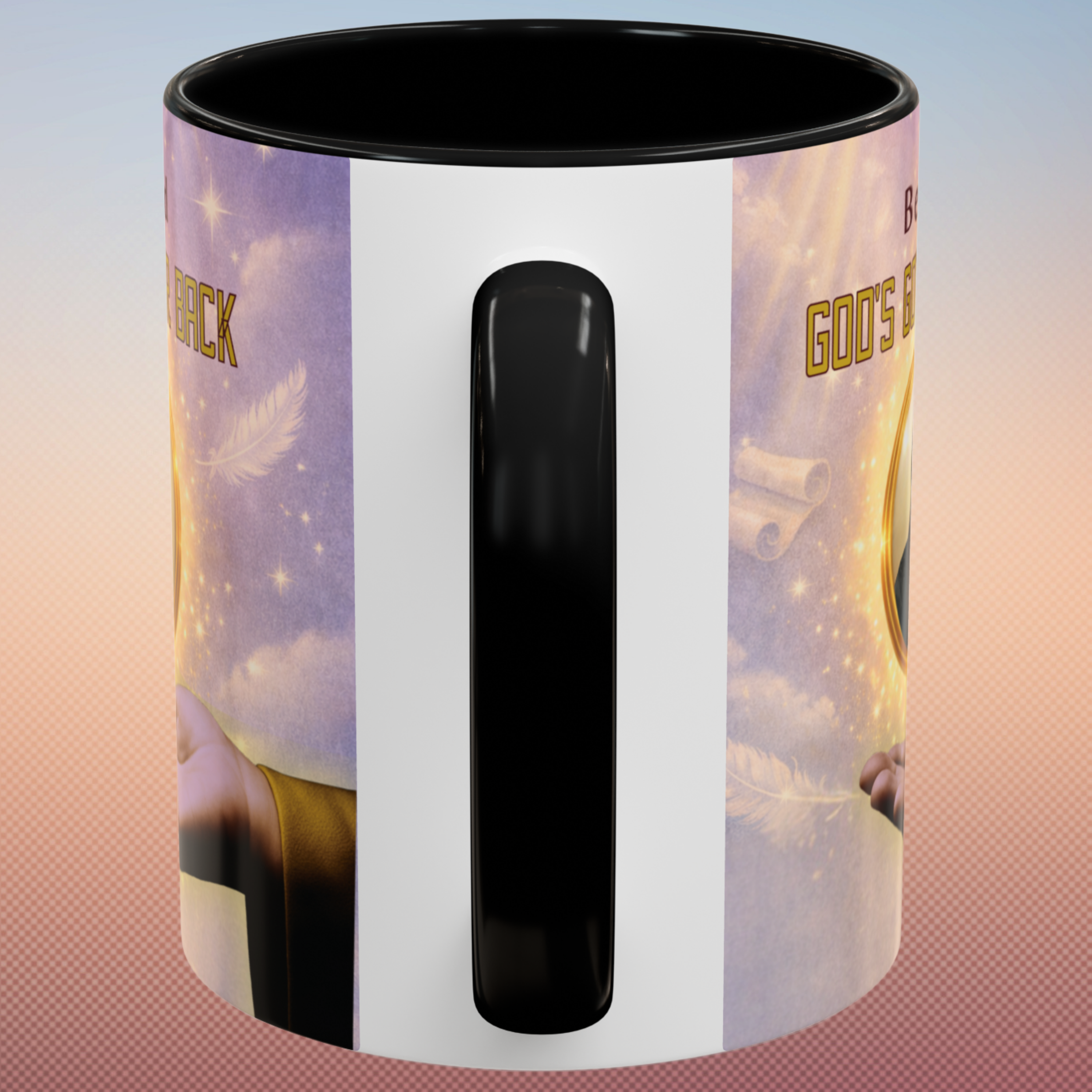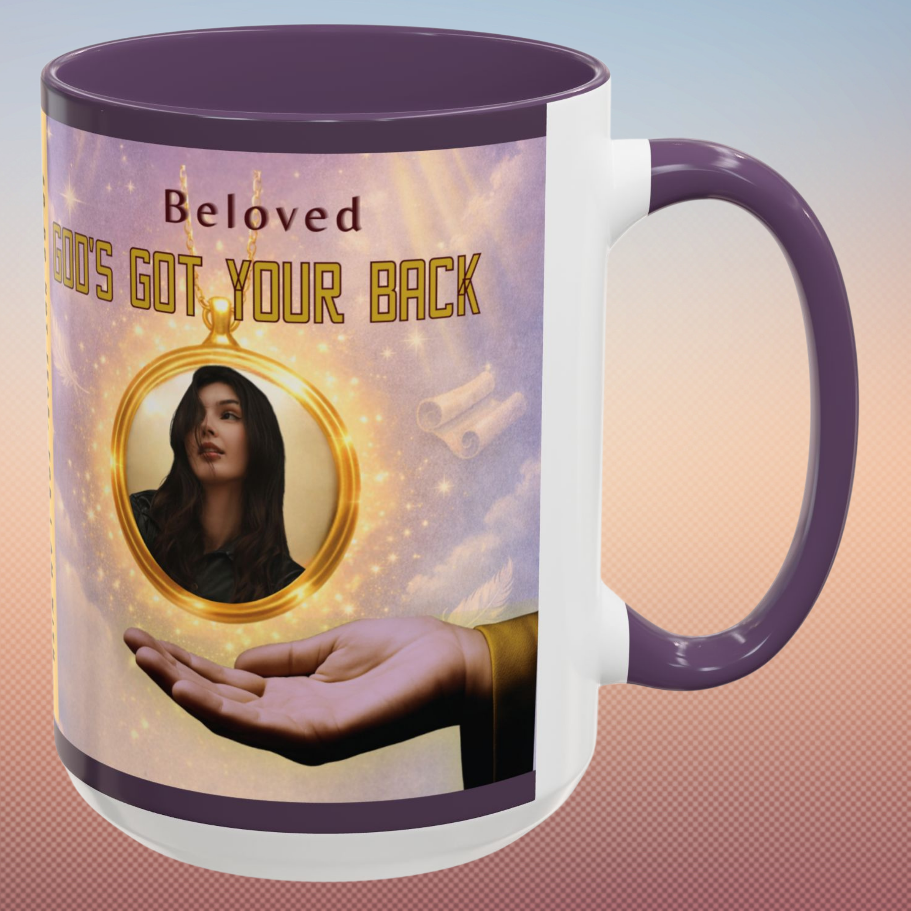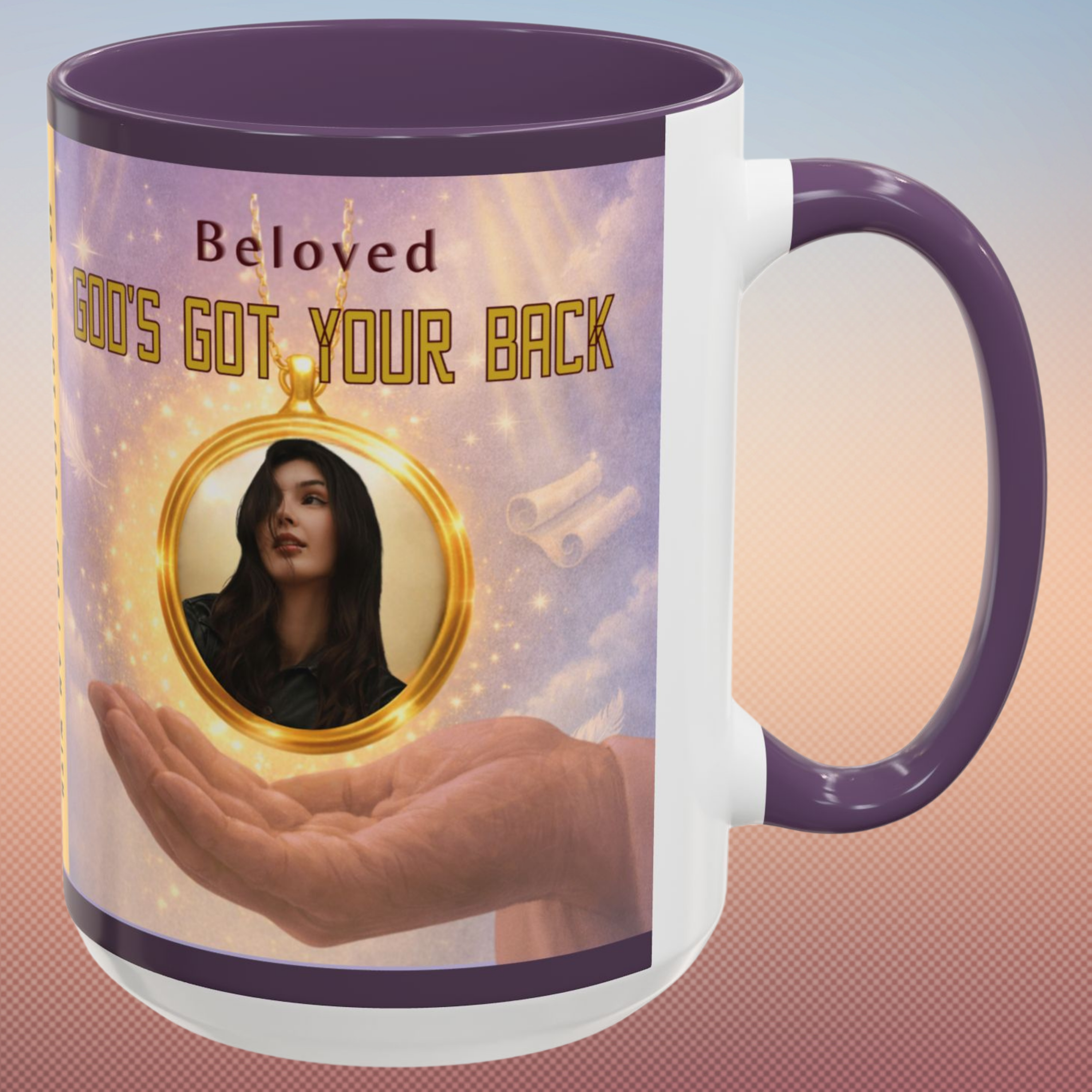 Start your day reminded of who’s holding you up—with this powerful “God’s Got Your Back” wraparound mug. Designed to encourage hearts and strengthen faith, this Christian mug features a golden photo locket falling safely onto God’s Righteous Right Hand, anchored by the promise of Isaiah 41:10: