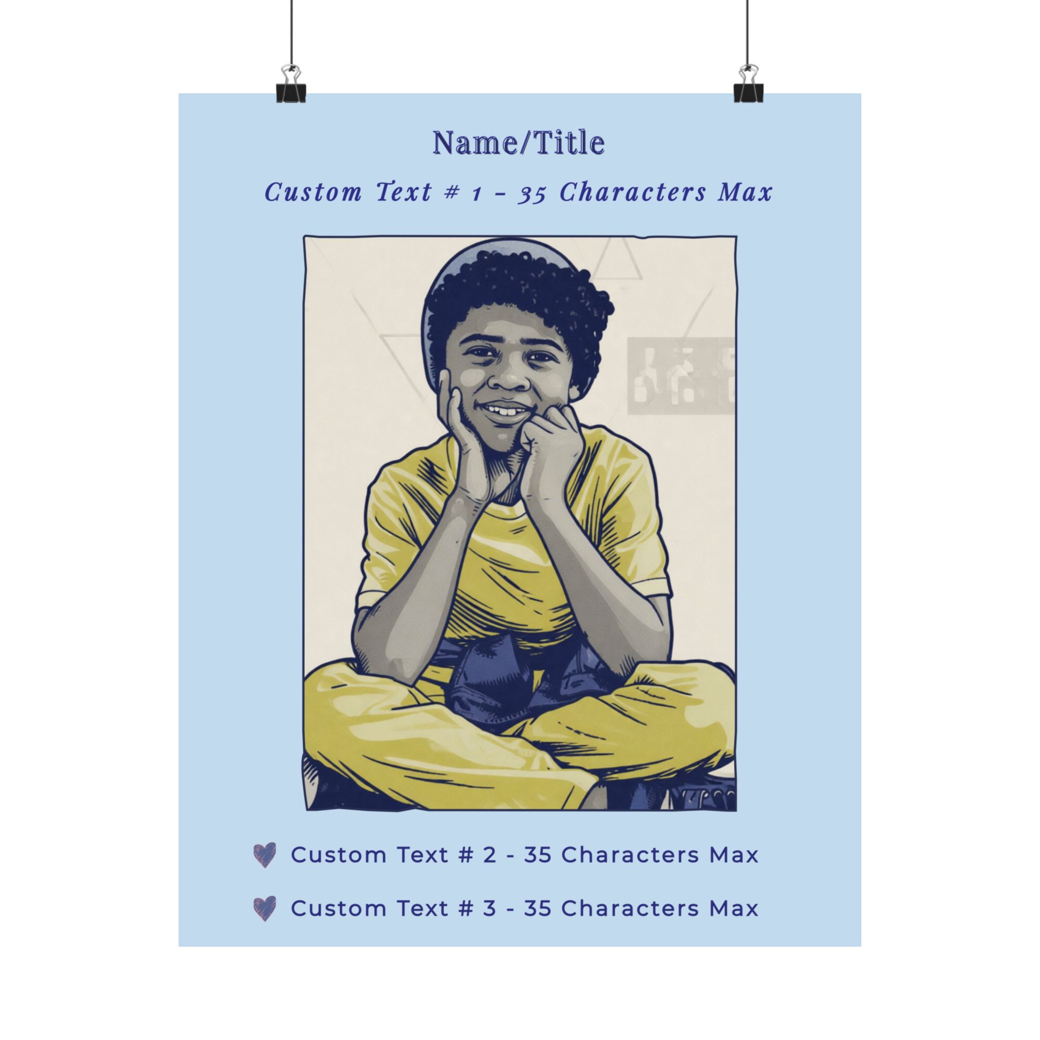 These are not just posters but personalized works of art. Featuring a stylish “cartoonified’ version of your favorite people, pets, or places, you can immortalize their identity with custom text that will be printed on the top and bottom of the poster. It makes an ideal gift for birthdays, Christmas, Mother’s Day, Father’s Day, graduations, or simply to affirm someone’s value to your family and friend group.