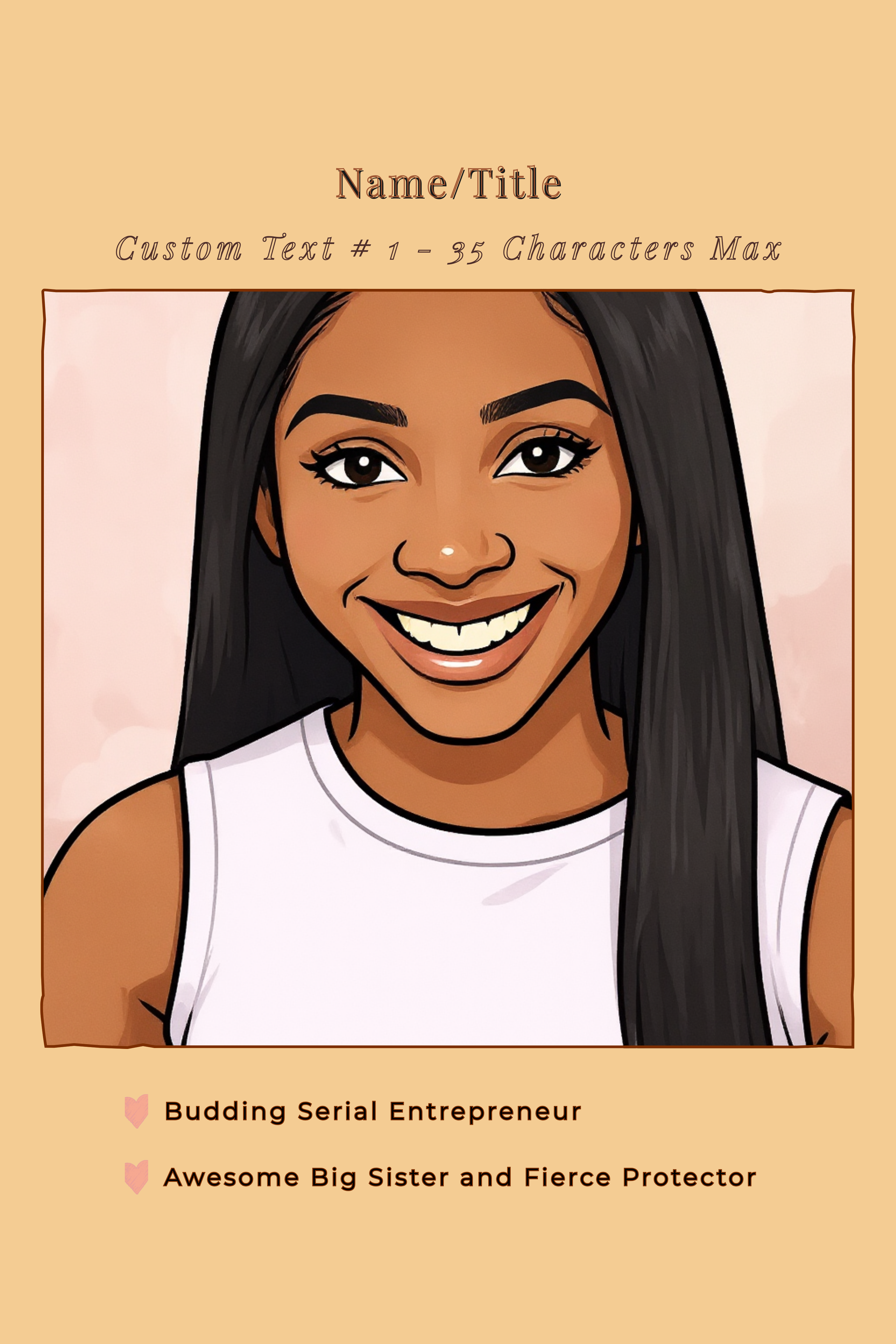 These are not just posters but personalized works of art. Featuring a stylish “cartoonified’ version of your favorite people, pets, or places, you can immortalize their identity with custom text that will be printed on the top and bottom of the poster. It makes an ideal gift for birthdays, Christmas, Mother’s Day, Father’s Day, graduations, or simply to affirm someone’s value to your family and friend group.