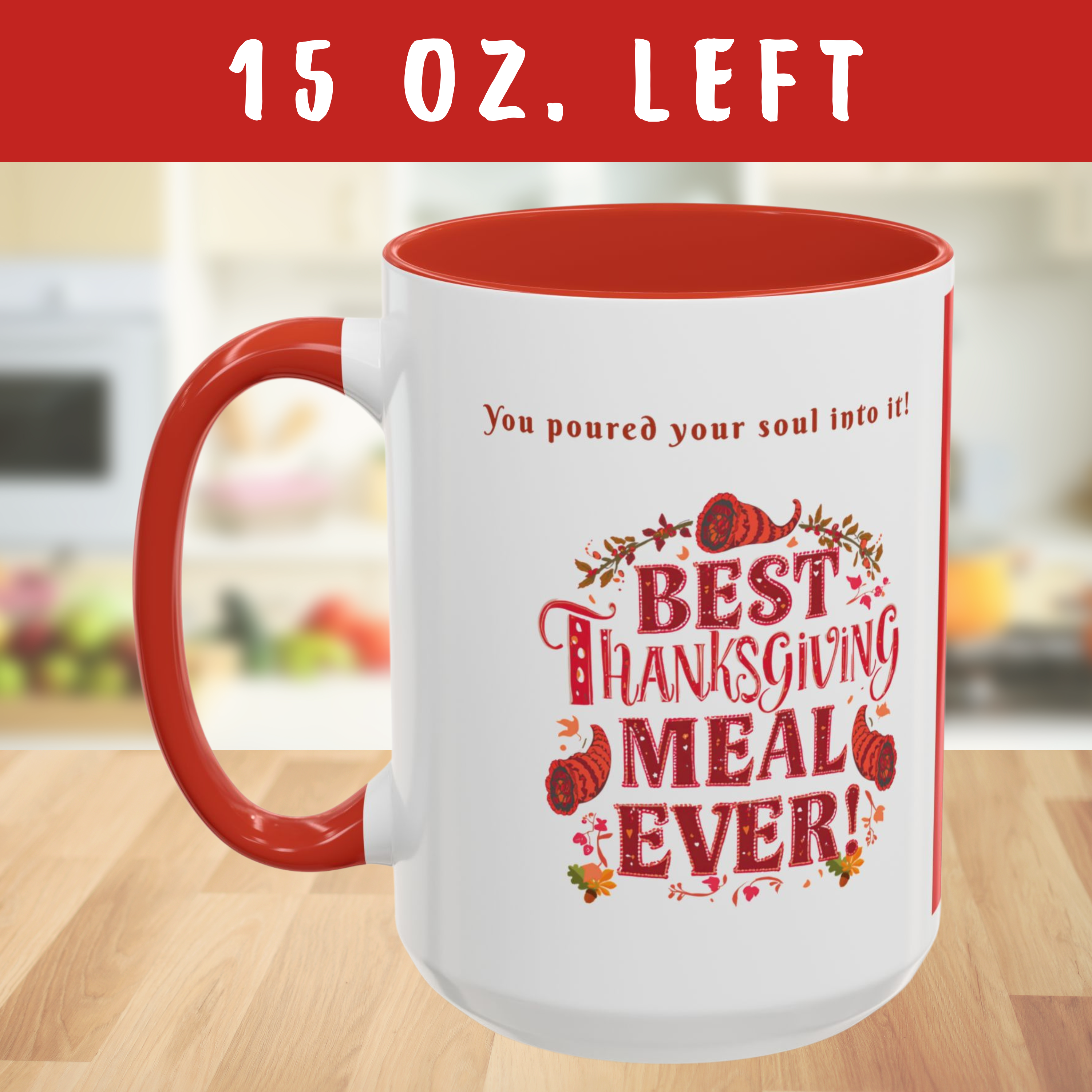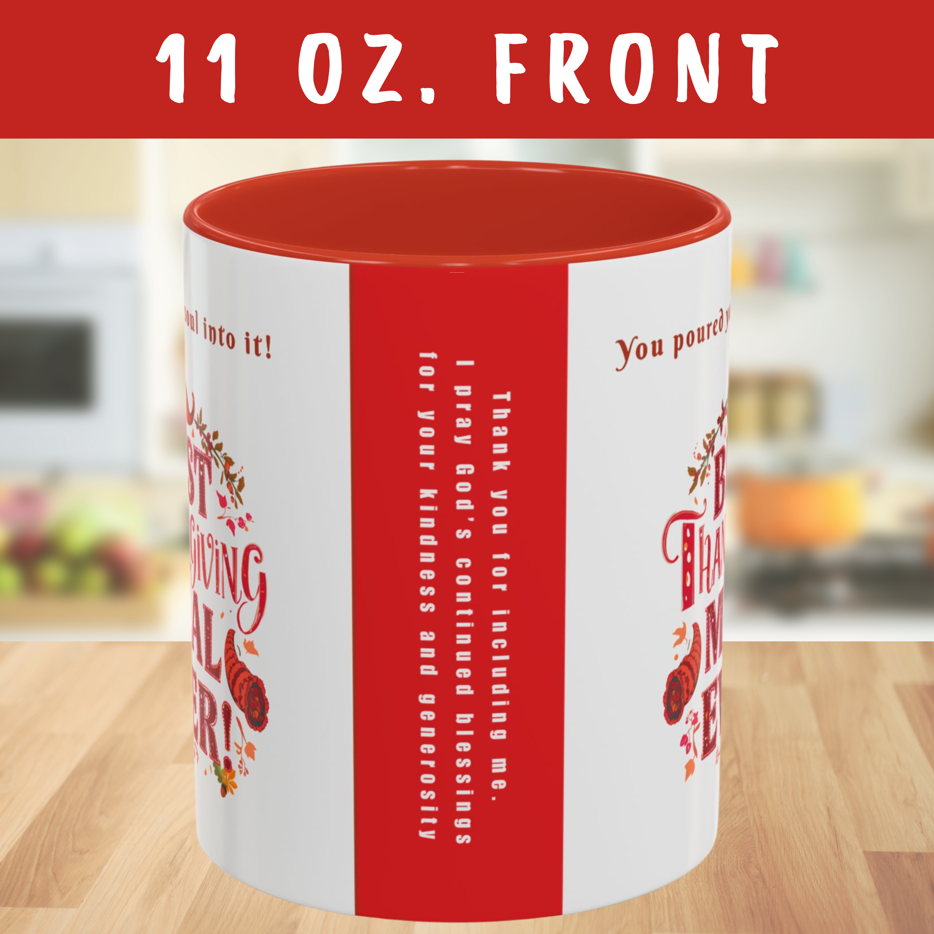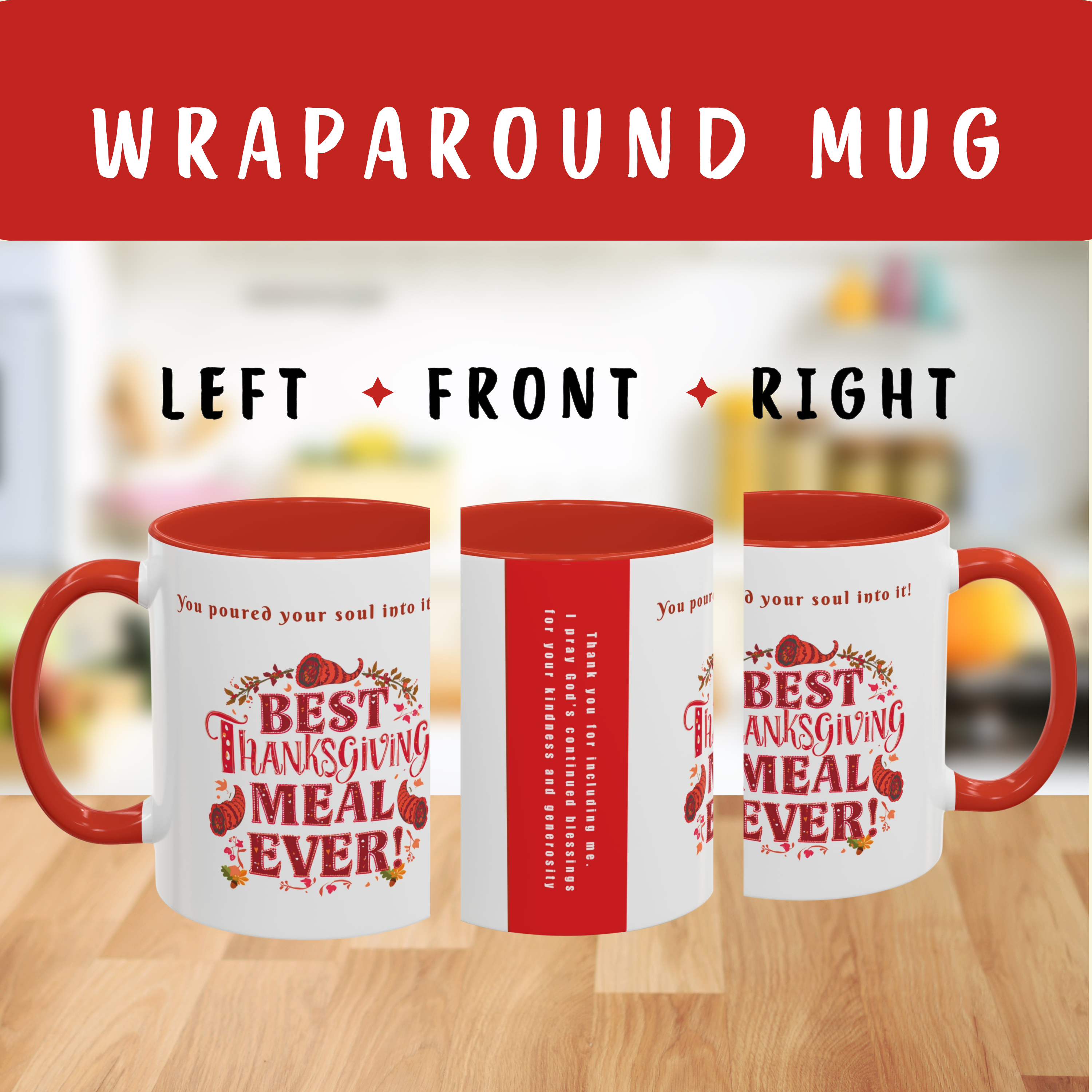 Personalizable Post-Thanksgiving Wraparound Mug – “You poured your soul into it! – Best Thanksgiving Meal Ever!” | Christian Host Gift | Can Customize with Message to Host
